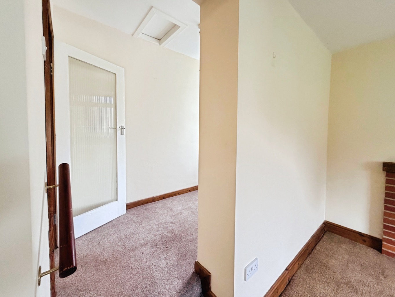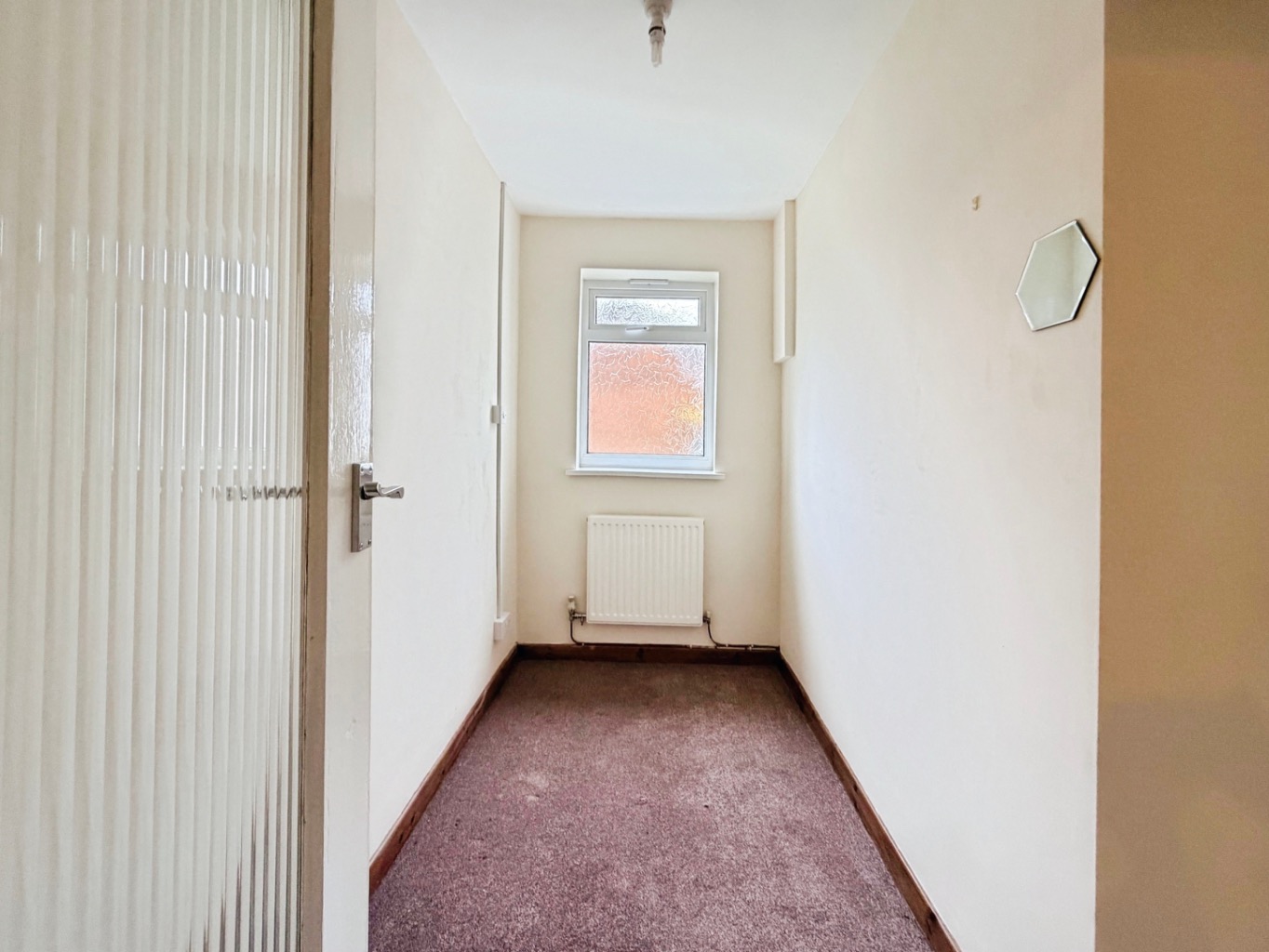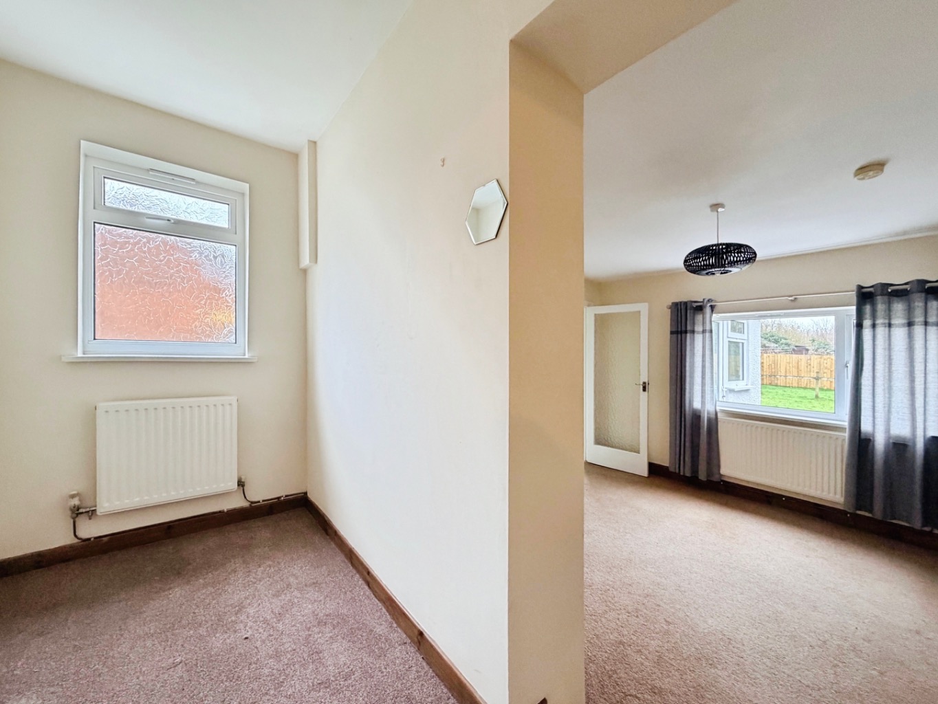 Entrance from first reception room, radiator, one uPVC window to front elevation, carpeted underfoot.