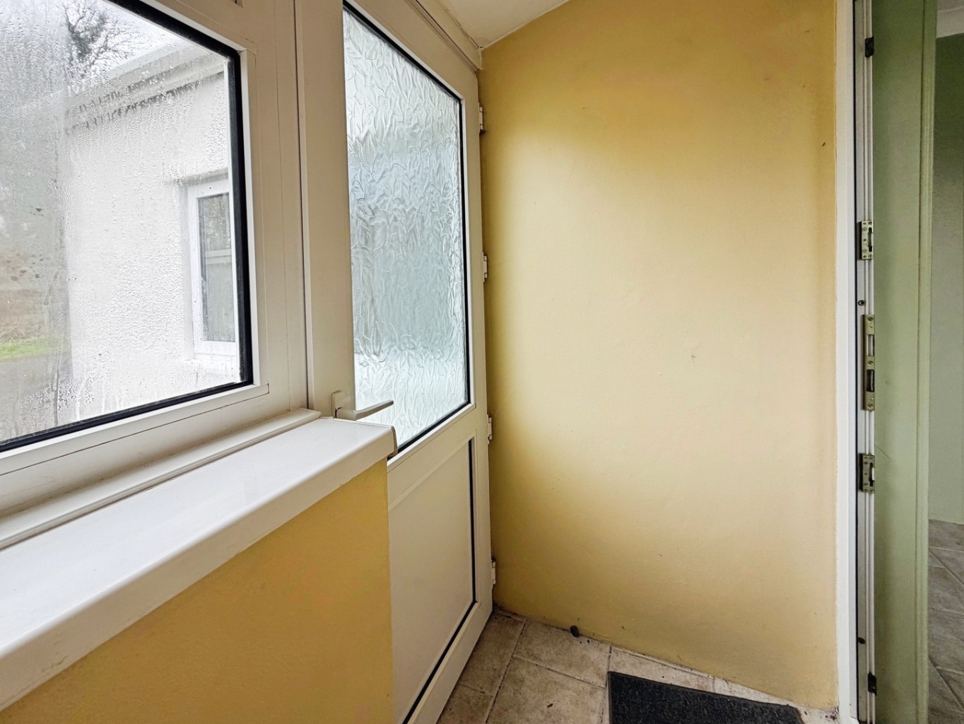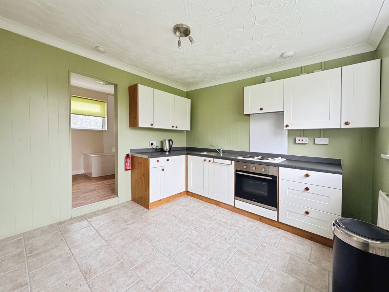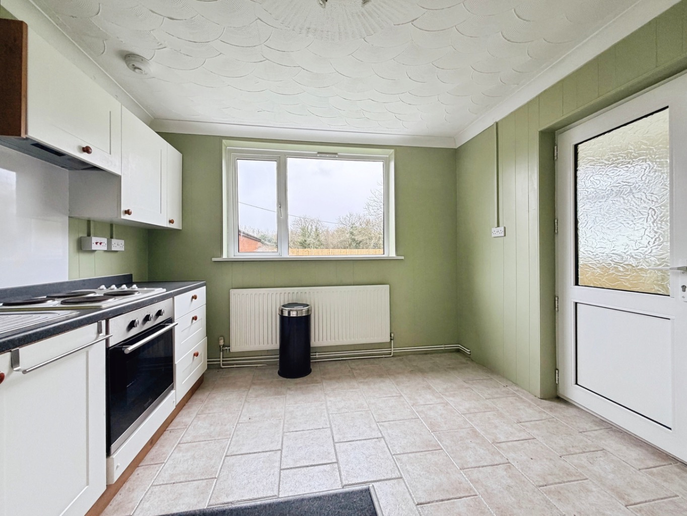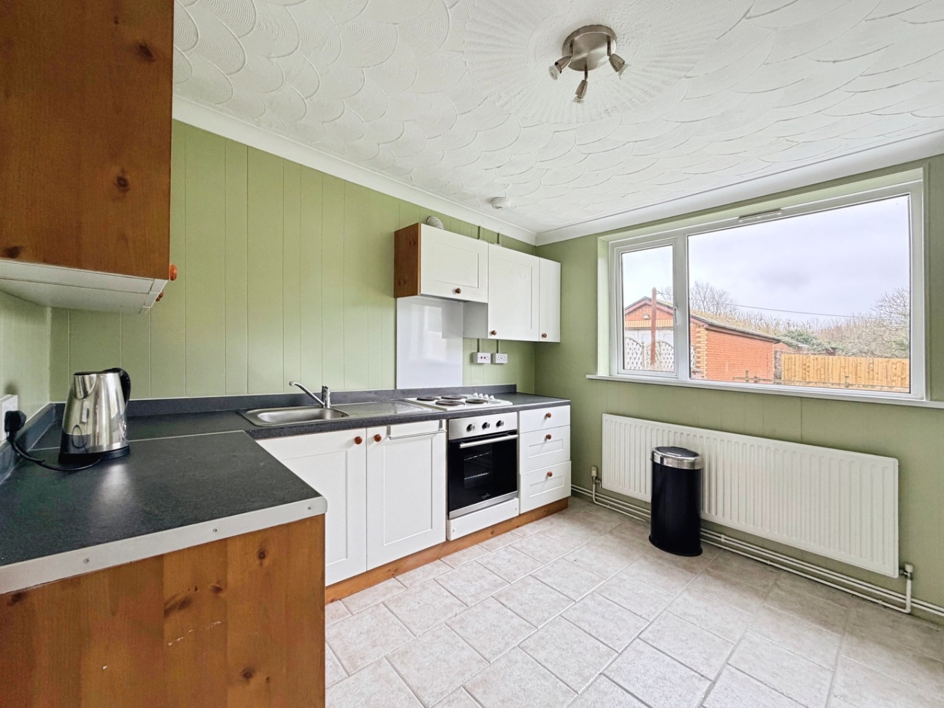 Fitting with matching wall and base units, tiled underfoot, radiator, one uPVC window to rear elevation, uPVC door leading into the back porch.