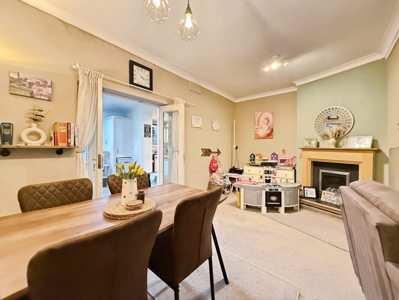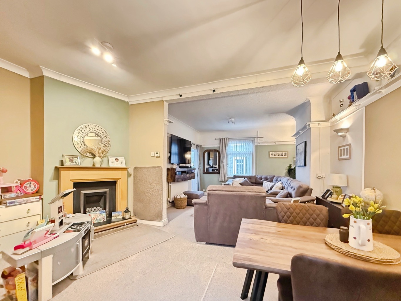The ground floor features a large reception room, providing a comfortable living and dining space, along with a generous kitchen breakfast room with ample space for dining and everyday family use.