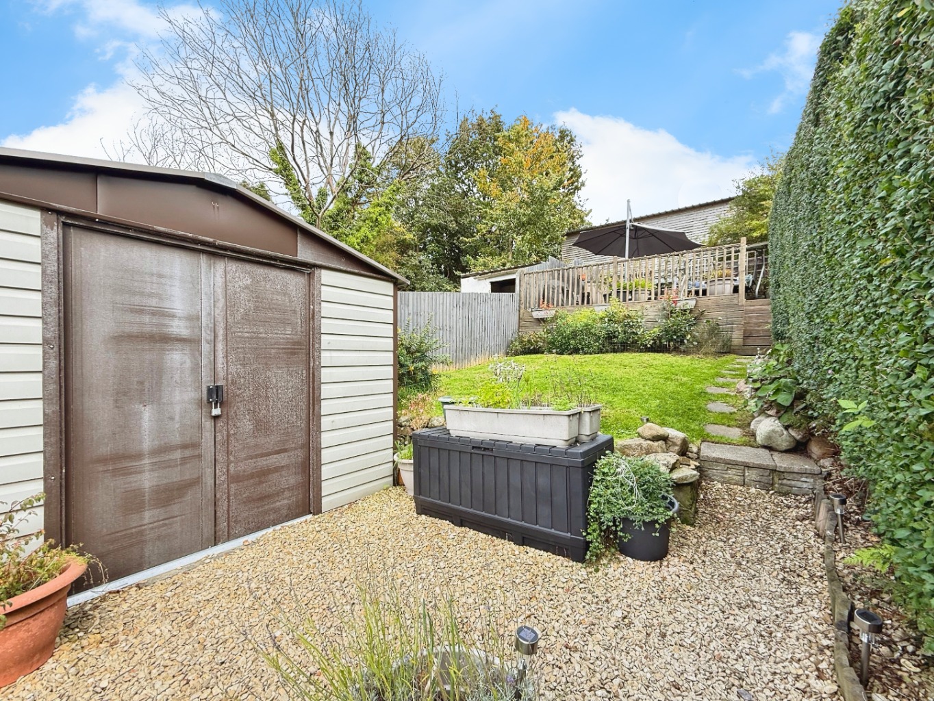 - A garden shed with full power and electric – ideal for a workshop or hobby space