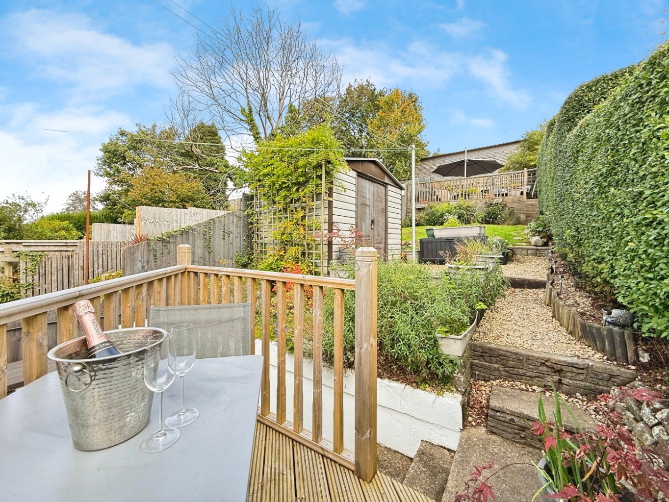- Professionally installed tiered decking (top tier 2021, lower bistro area 2024) – perfect for entertaining or relaxing