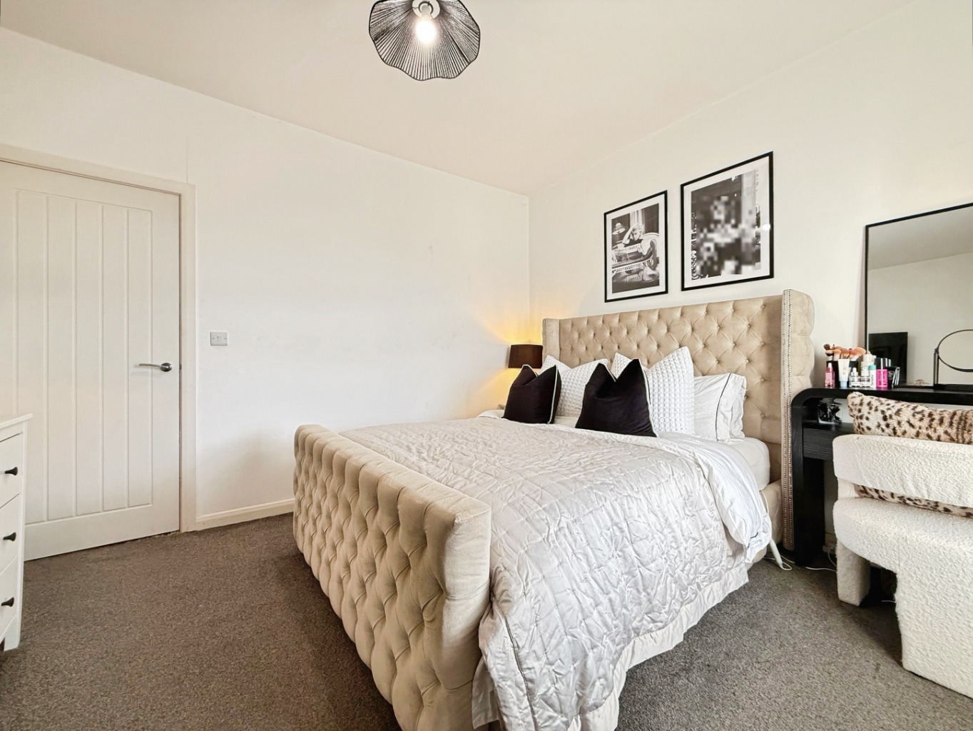 Carpeted underfoot, loft access, doors into: