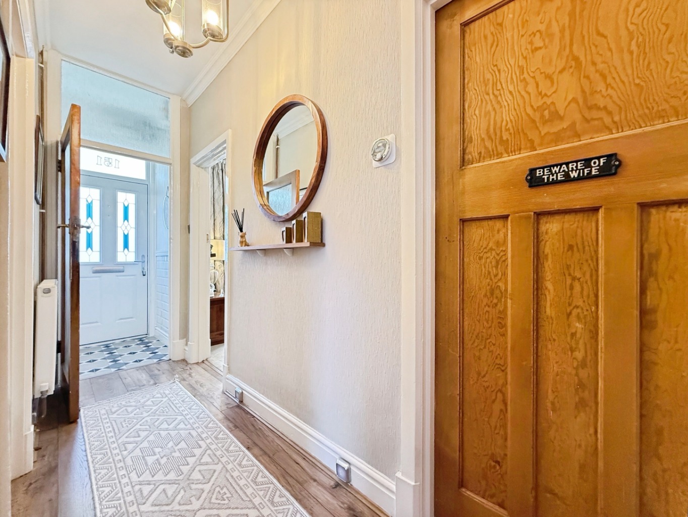 The main bedroom boasts a charming bay window with shutter blinds, while bedroom two offers further comfortable accommodation. The contemporary four-piece family bathroom is finished to a high standard, providing both style and practicality. A bright conservatory with patio doors offers an ideal spot for relaxing while overlooking the garden.