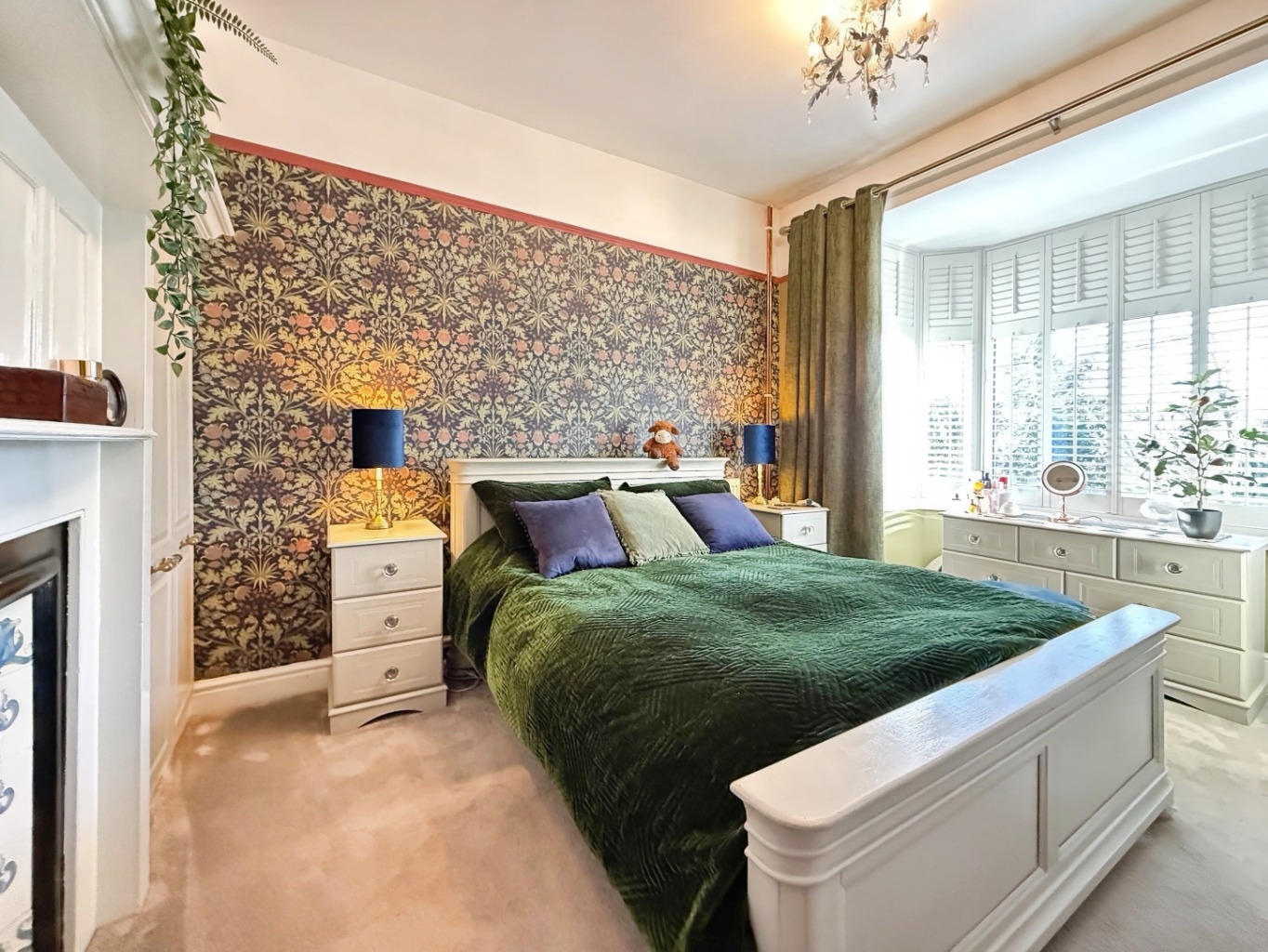 Carpeted underfoot, uPVC double glazed bay style window with shitter blinds to front elevation, radiators, feature fireplace.