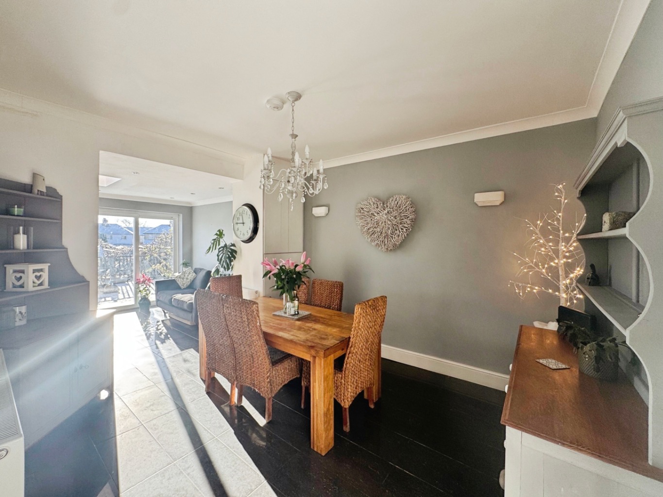 As you step through the front door, a welcoming entrance hallway invites you further inside, setting a friendly tone for the entire home. To your right, the lounge beckons, bathed in natural light streaming through its charming bay window – an ideal spot for cosy evenings with loved ones or quiet moments with a good book. This is a space designed for relaxation and connection, where laughter will echo and memories will be made.