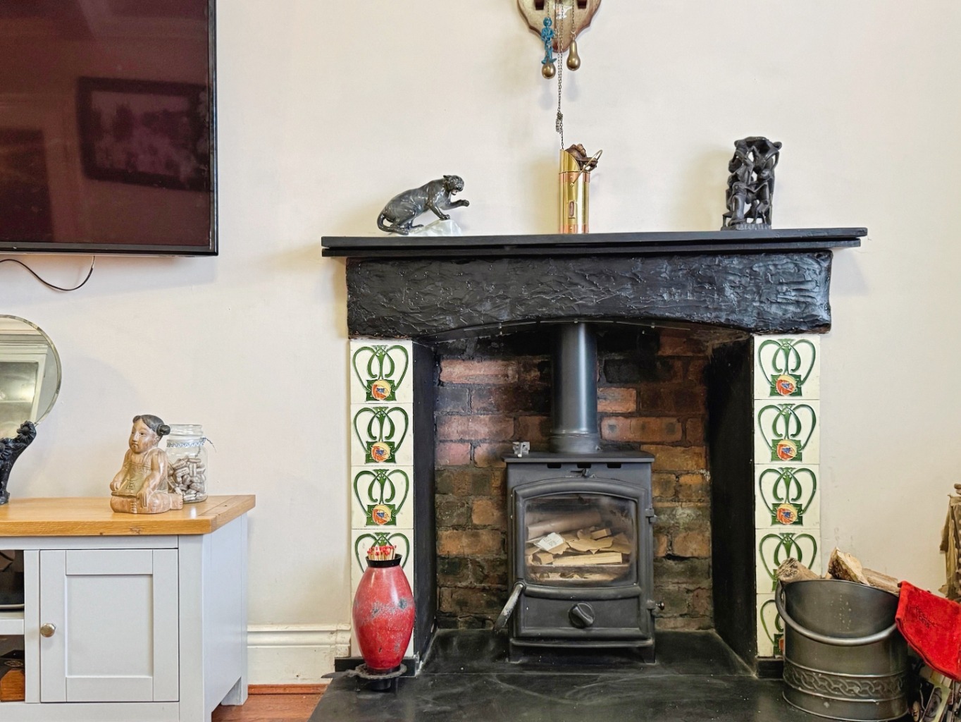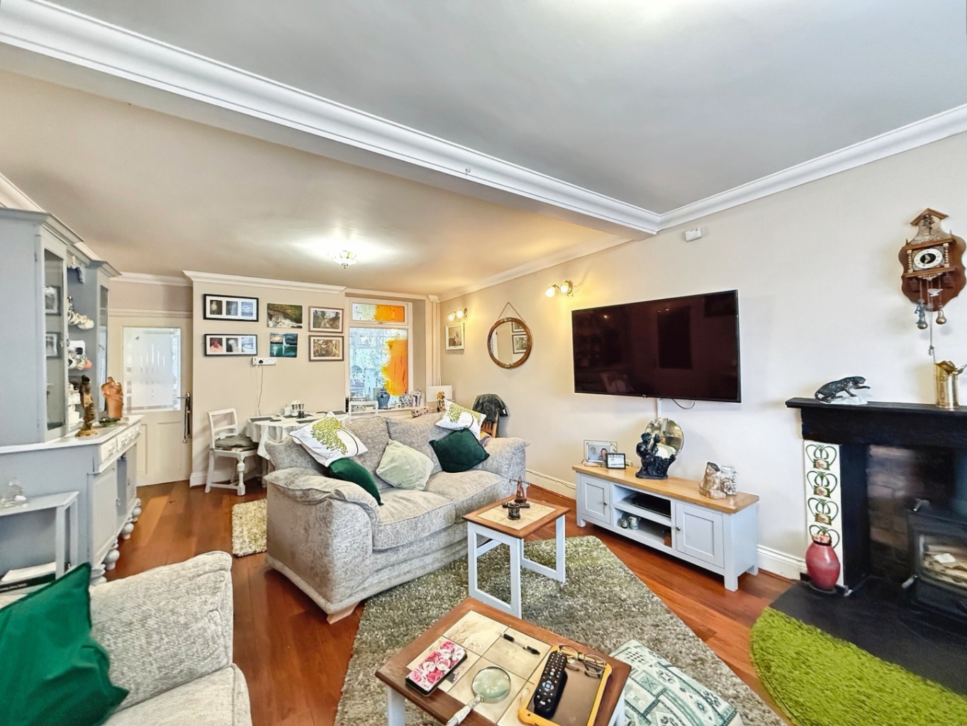 Laminate flooring underfoot, radiator x2, feature log burning stove, uPVC double glazed window to front and rear elevation, door into: