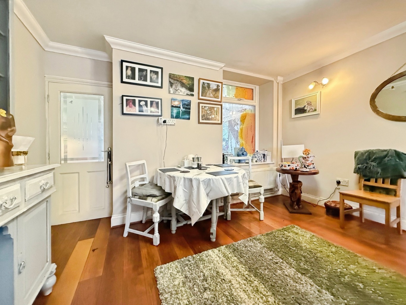Of uPVC double glazed construction, wall mounted radiator, uPVC patio doors to rear garden.