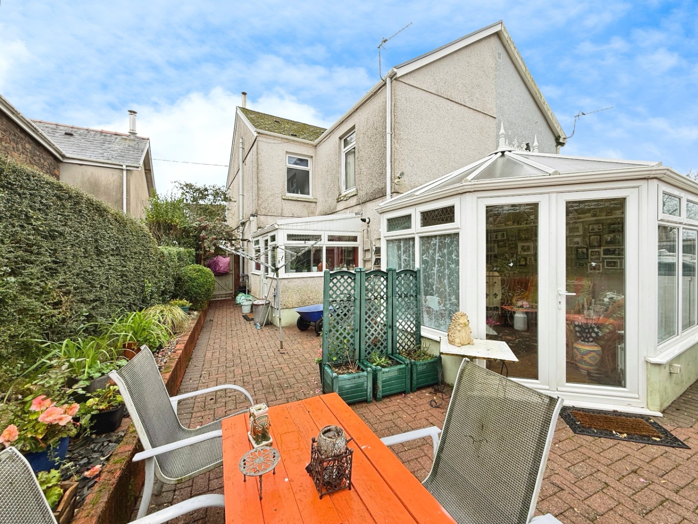 The property benefits from a front driveway and gated side access, leading to a generous rear garden. Inside, the accommodation comprises a welcoming lounge/diner, a fitted kitchen, a useful utility room, and a bright conservatory overlooking the garden—ideal for additional living or dining space.