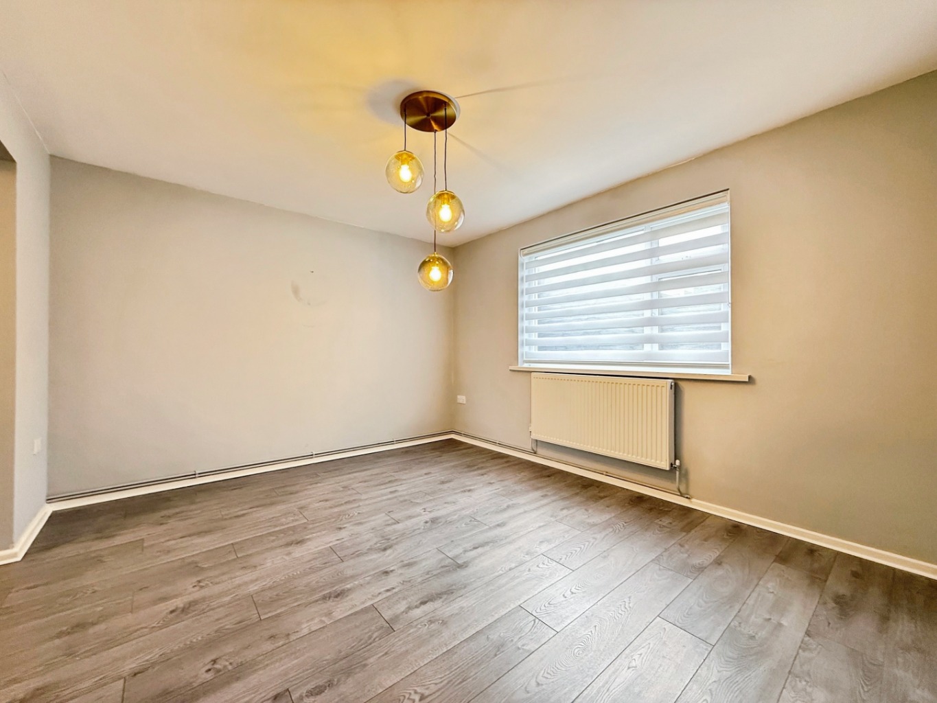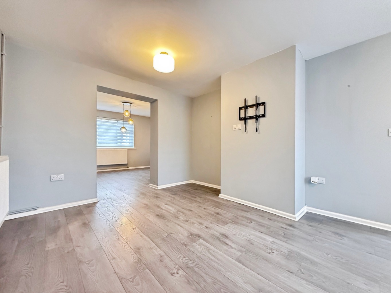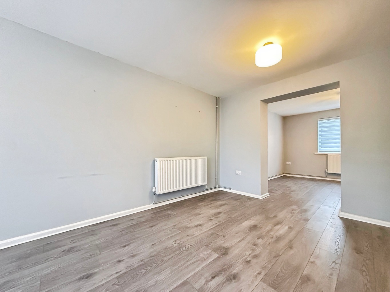 Laminate flooring, radiator, uPVC double glazed window to rear elevation, view through to kitchen.
