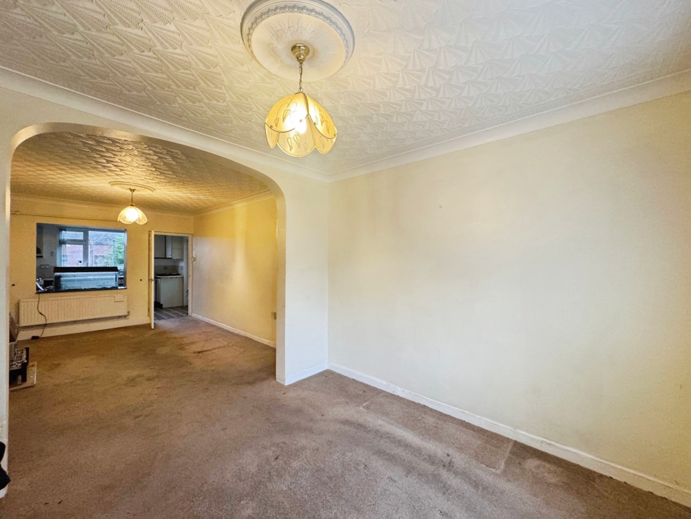 As you approach, a gated driveway welcomes you, offering convenient off-road parking, while a front lawn to the side provides a lovely green introduction to your new abode. It's a warm invitation, hinting at the comfort and potential within. Stepping inside, you'll discover a welcoming lounge/diner, a versatile space perfect for both quiet evenings and lively gatherings. This area, with its generous proportions, offers ample room for relaxation and entertaining, ready to become the heart of your home where cherished memories will undoubtedly be made.