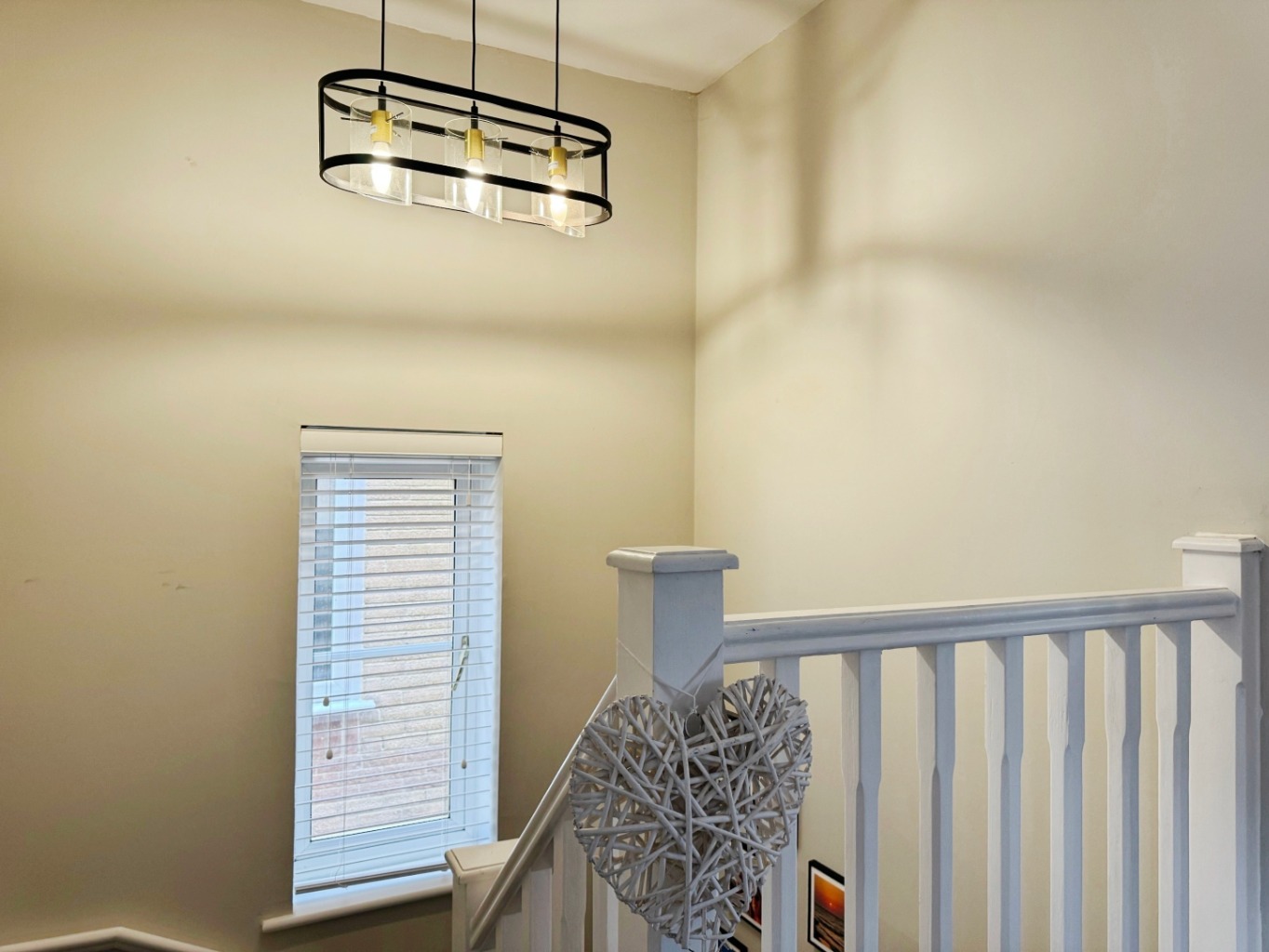 uPVC double glazed window to stairwell, raduatior, door to airing cupboard, access to loft, doors to: