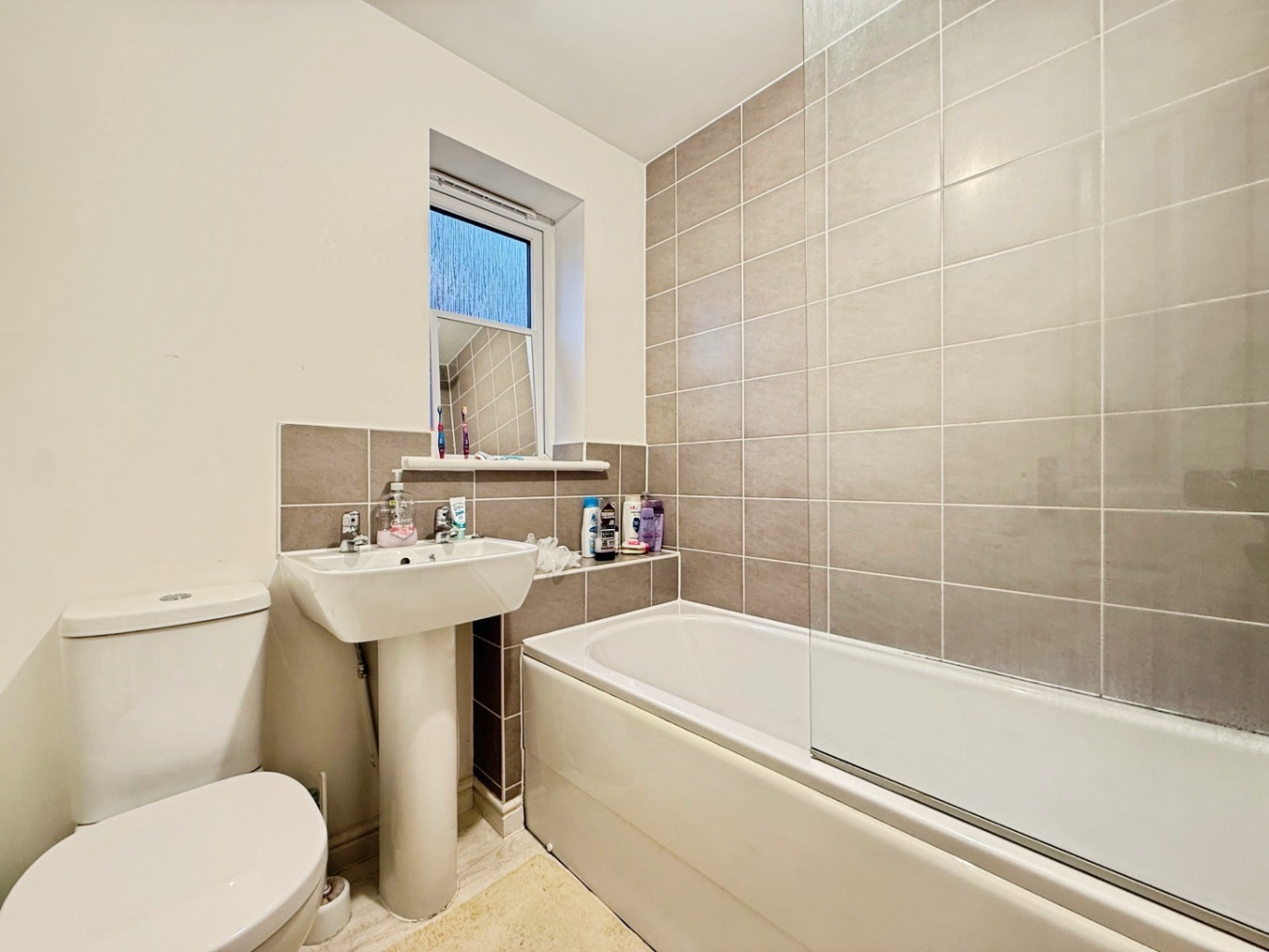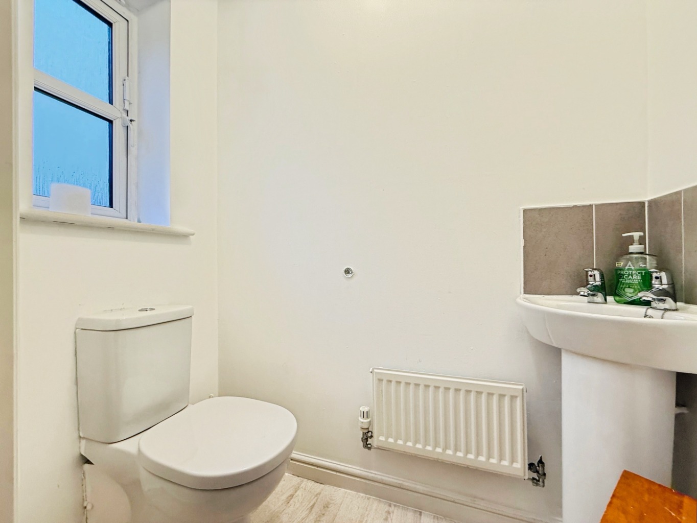 Fitted with a white two piece suite comprising of W/C, pedestal wash hand basin with tiled splash back, radiator, uPVC double glazed frosted window to front elevation.