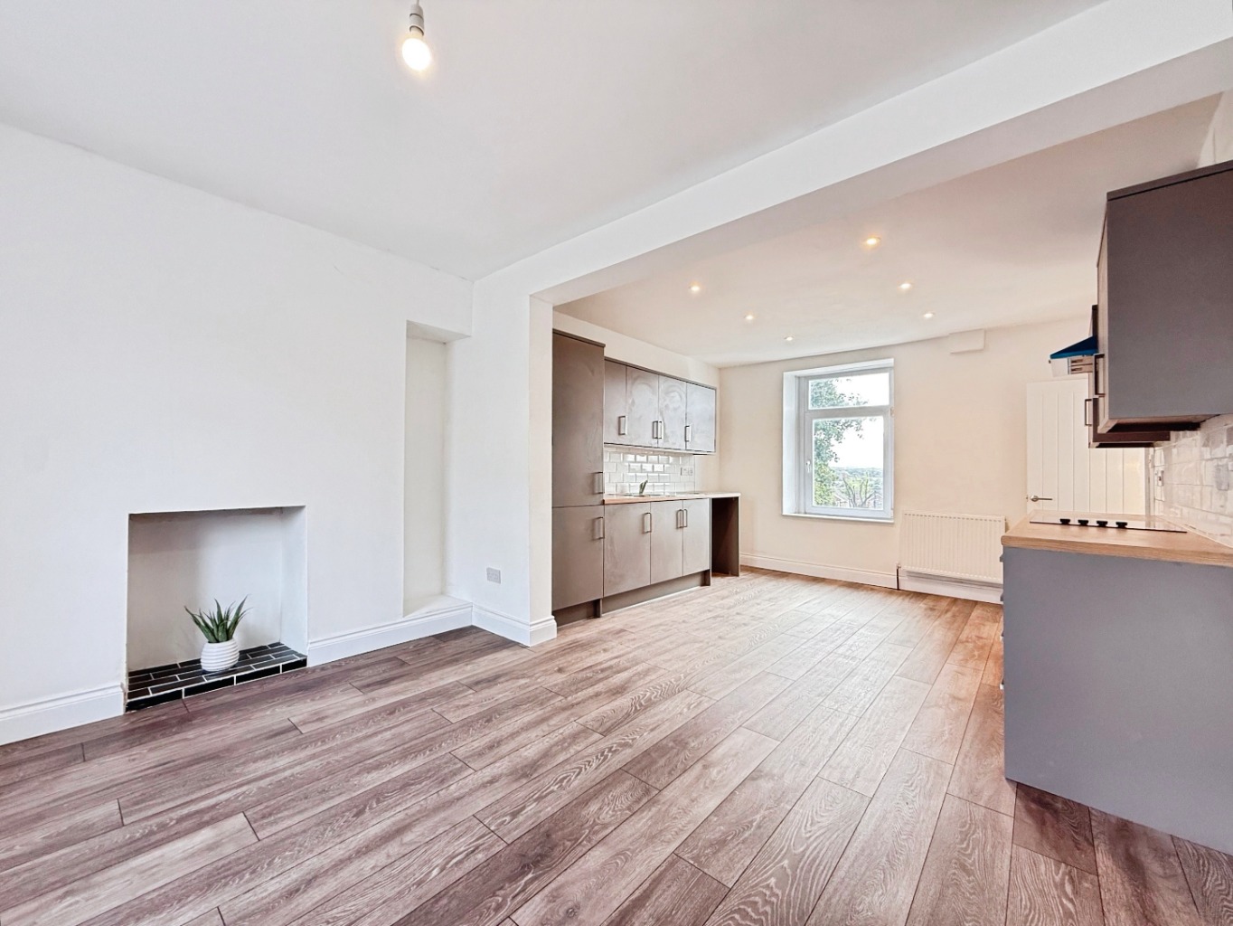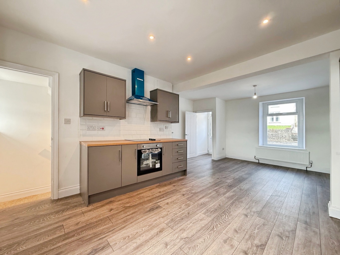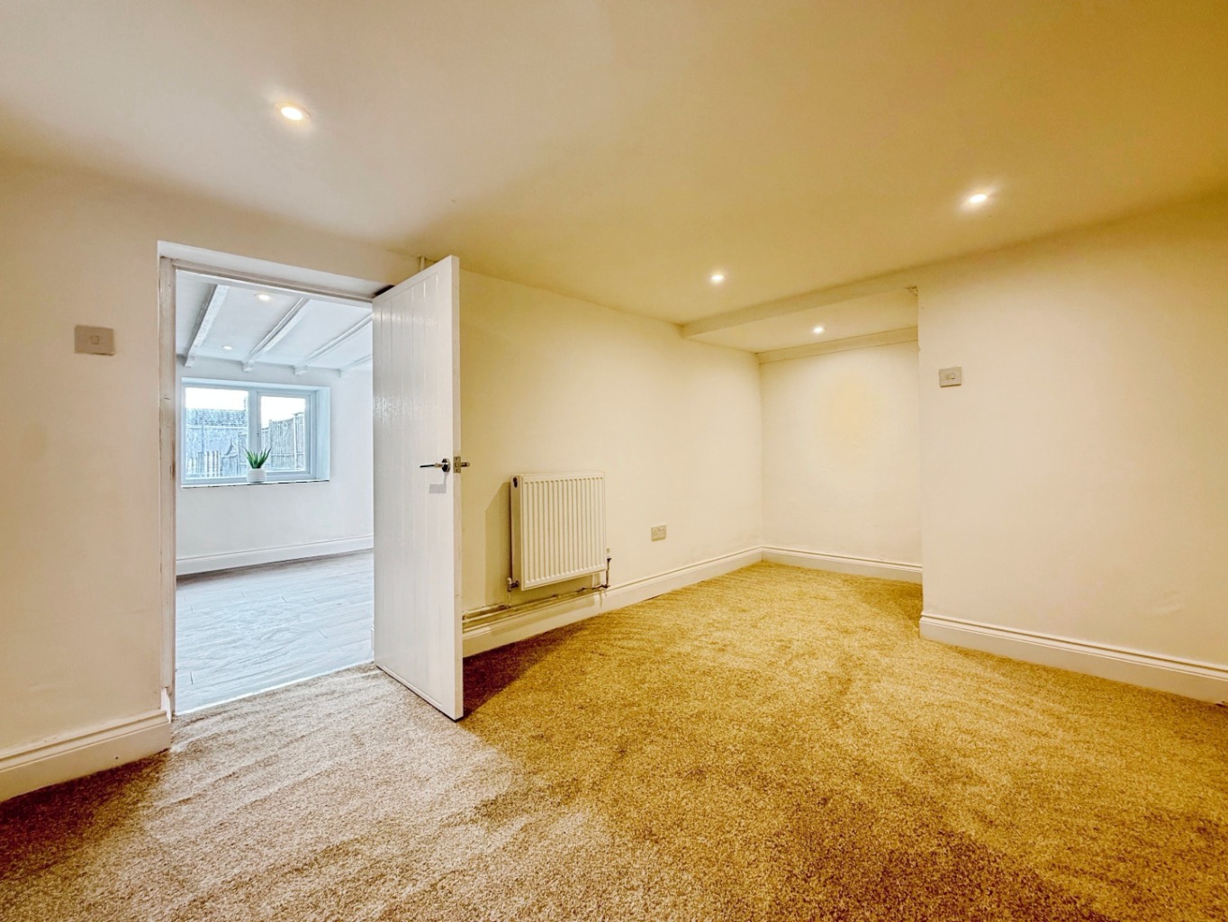 Spotlights to ceiling, uPVC double glazed window to rear elevation, uPVC double glazed door to rear elevation, radiator, door into:
