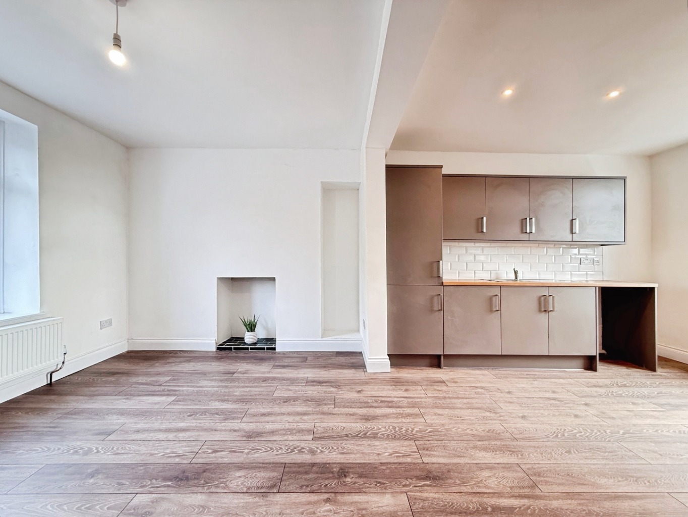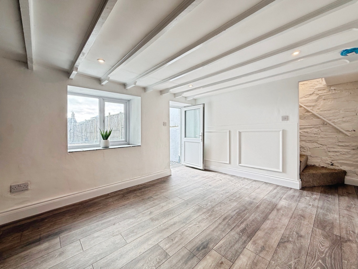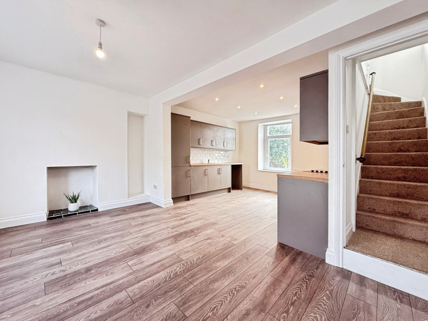 Spotlights to ceiling, uPVC double glazed window to rear elevation, uPVC double glazed door to rear elevation, radiator, door into: