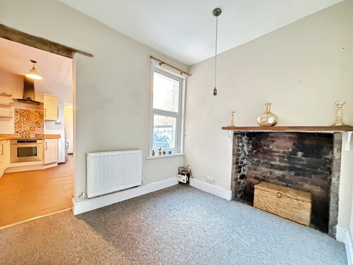 Carpeted underfoot, uPVC double glazed window to rear elevation, decorative exposed feature fireplace, radiator.