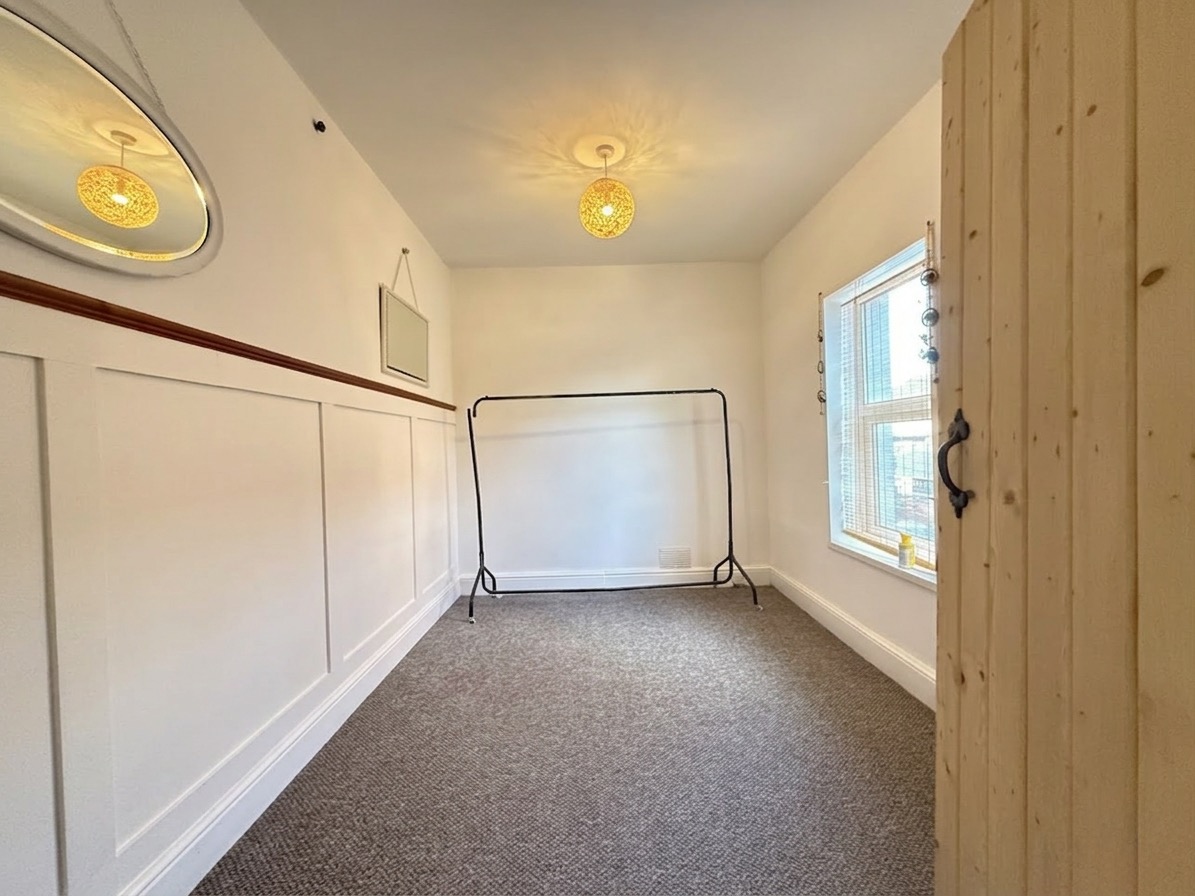 Carpeted underfoot, radiator, part panelled walls, uPVC double glazed window to side elevation.