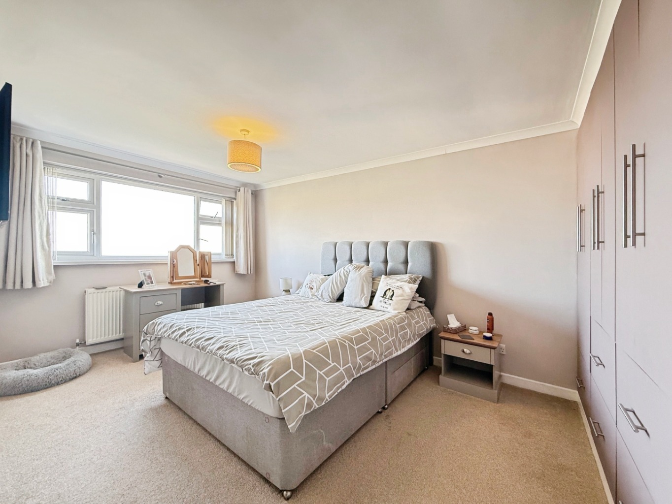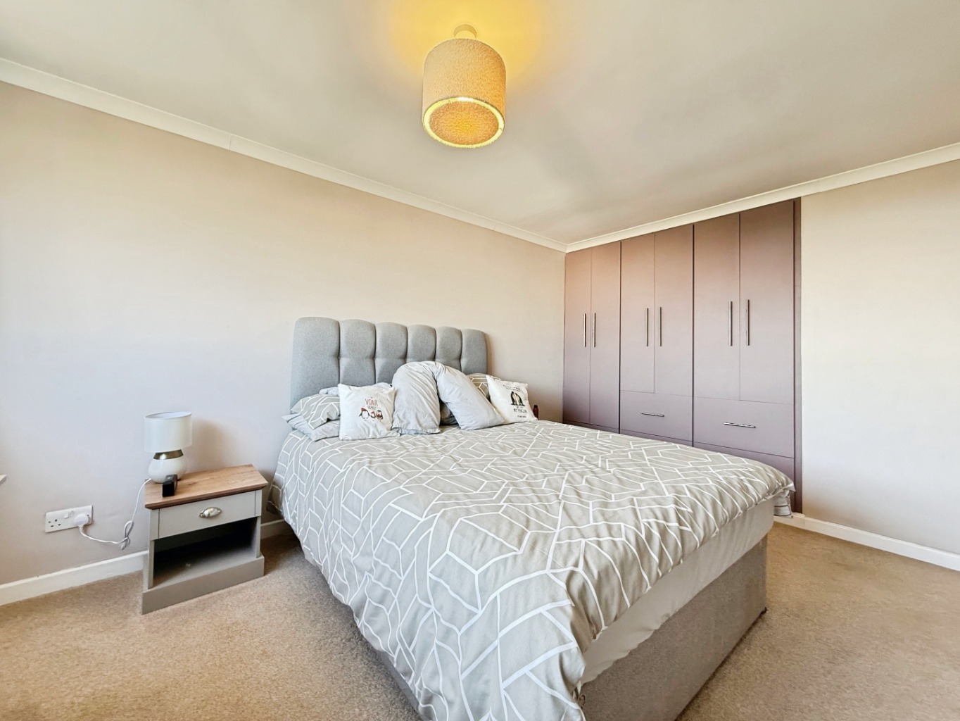 Carpeted underfoot, radiator, uPVC double glazed window with elevated views over Swansea Bay & The Mumbles, fitted wardrobes, coving to ceiling.