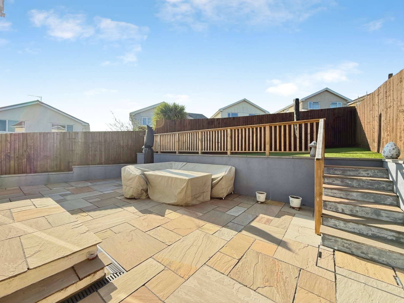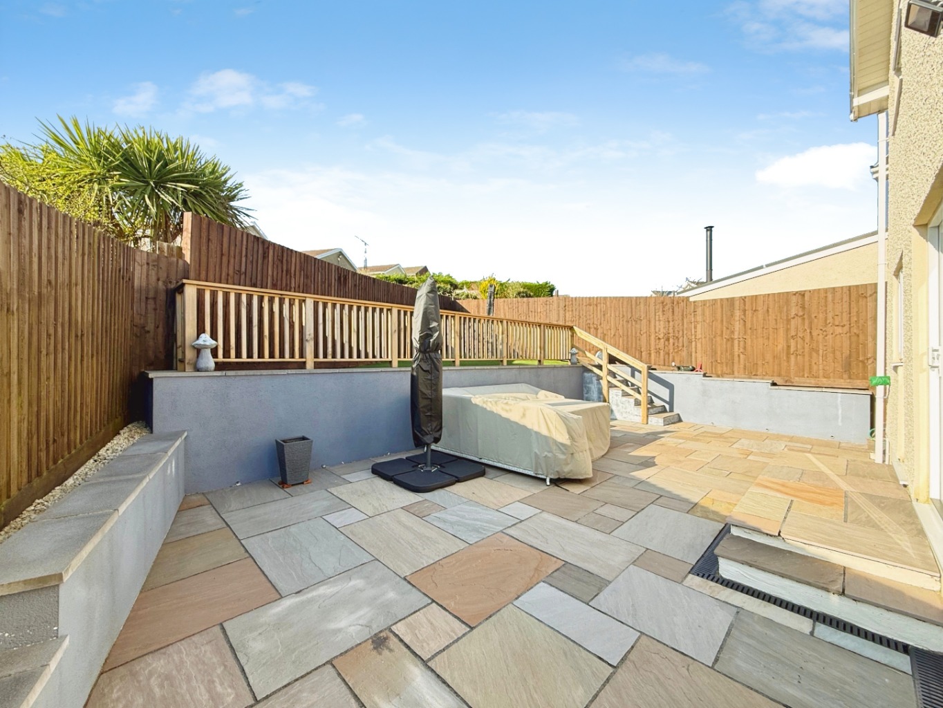 To the rear of the property there is a recently landscaped garden laid to sandstone patio with steps up to a raised artificial lawn area, outside tap.