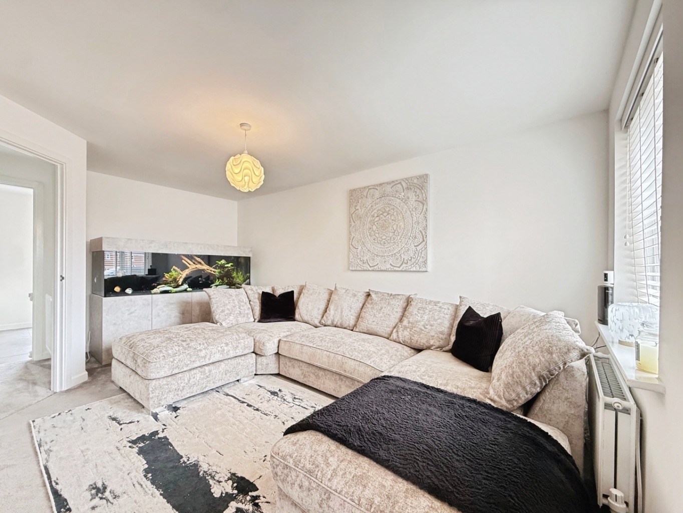 Carpeted underfoot, uPVC double glazed windows to front elevation, radiator, door into: