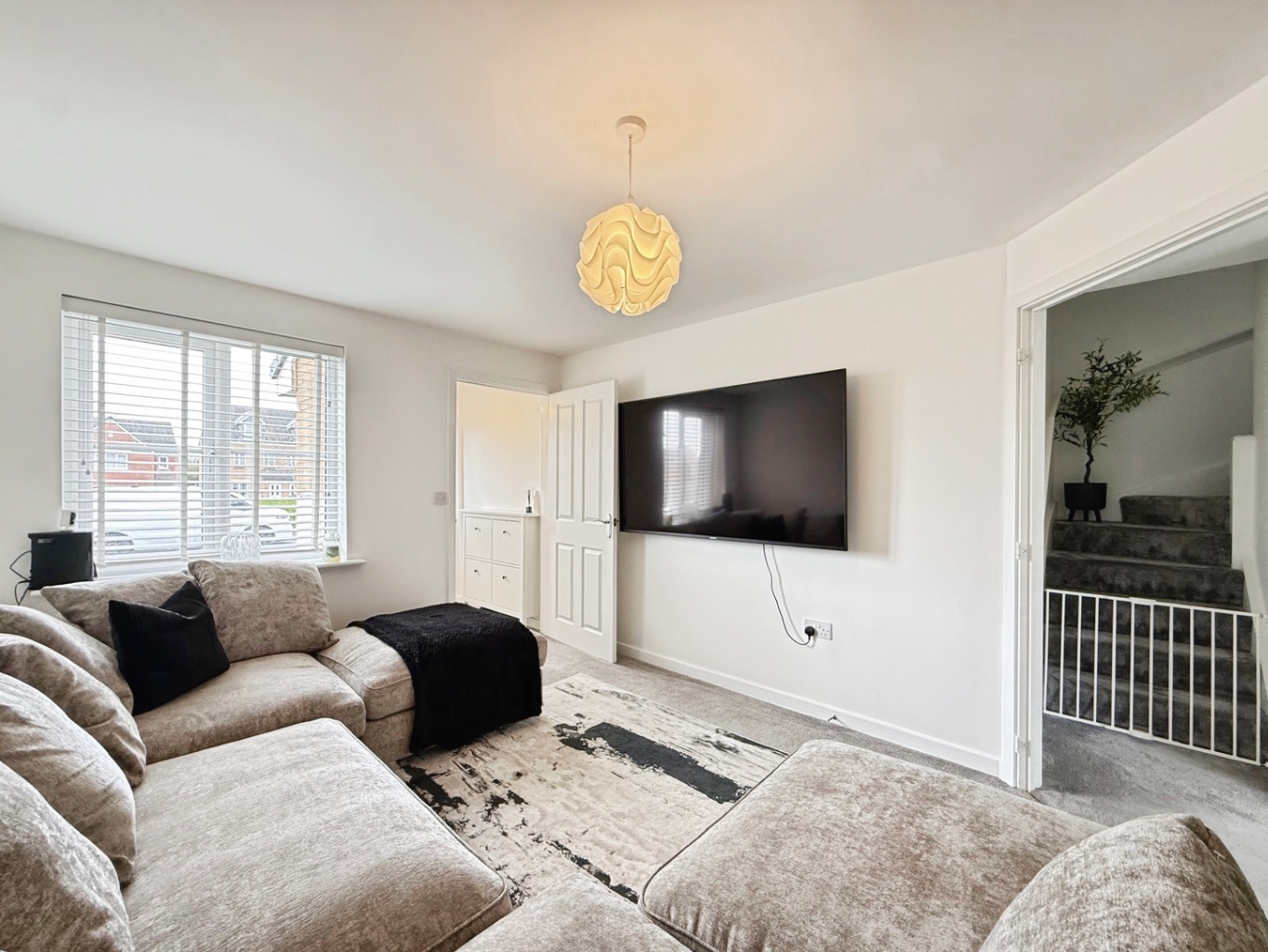 Boasting a welcoming lounge, a stylish modern kitchen/diner with patio doors opening onto the low-maintenance rear garden, and a convenient downstairs cloakroom, this home combines comfort with practicality. The integral garage and driveway provide ample off-road parking.