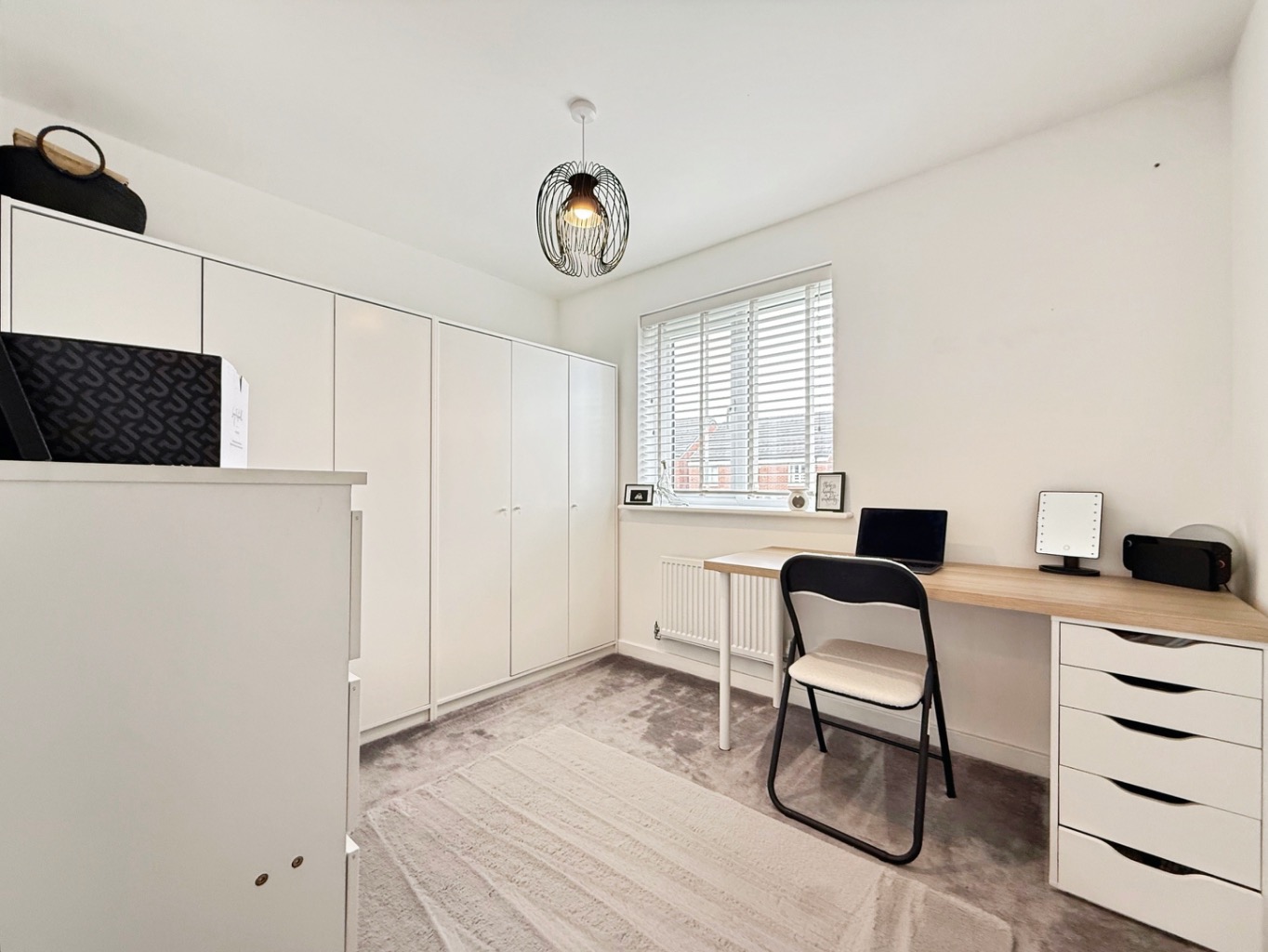Carpeted underfoot, loft access, storage cupboard.