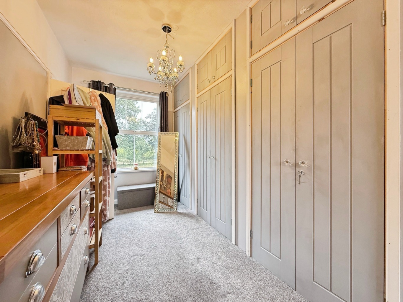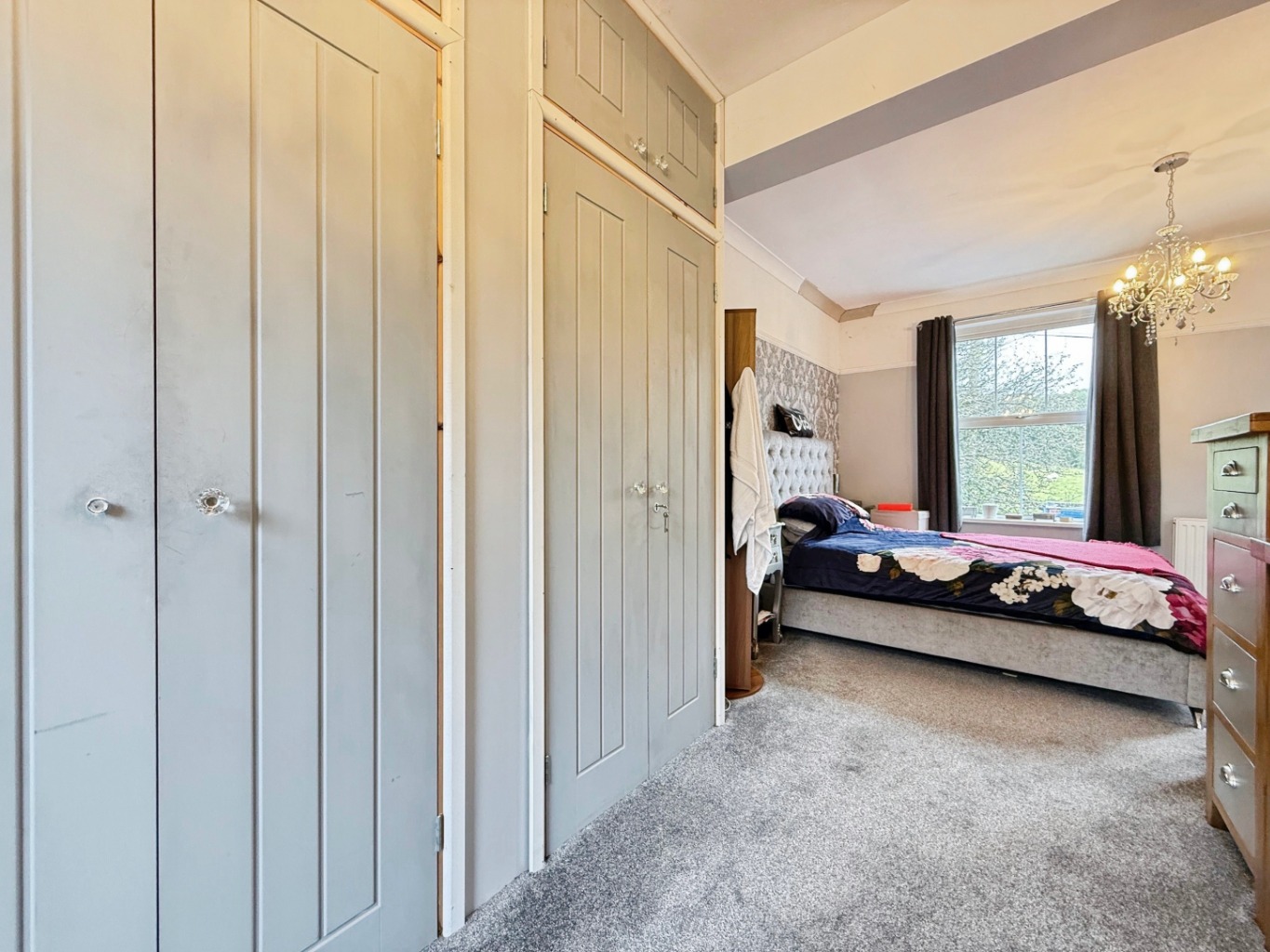 Carpeted underfoot, uPVC double glazed window to front elevation x2, uPVC double glazed window to rear elevation, radiator, built in wardrobes.