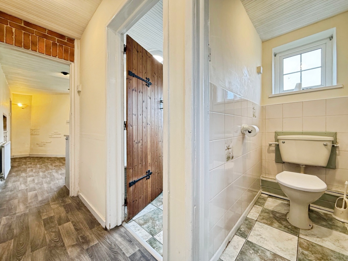 Fitted with a W/C, fully tiled, uPVC double glazed window to rear elevation.