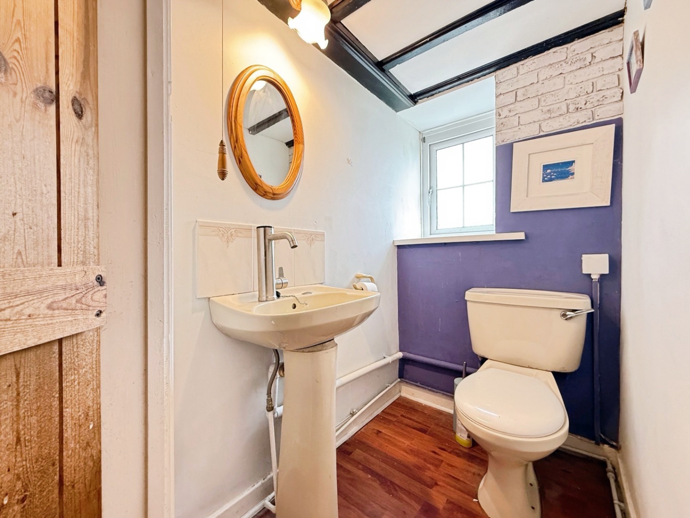 Fitted with a two piece suite comprising of W.C, pedestal wash hand basin, uPVC double glazed frosted window to rear elevation.