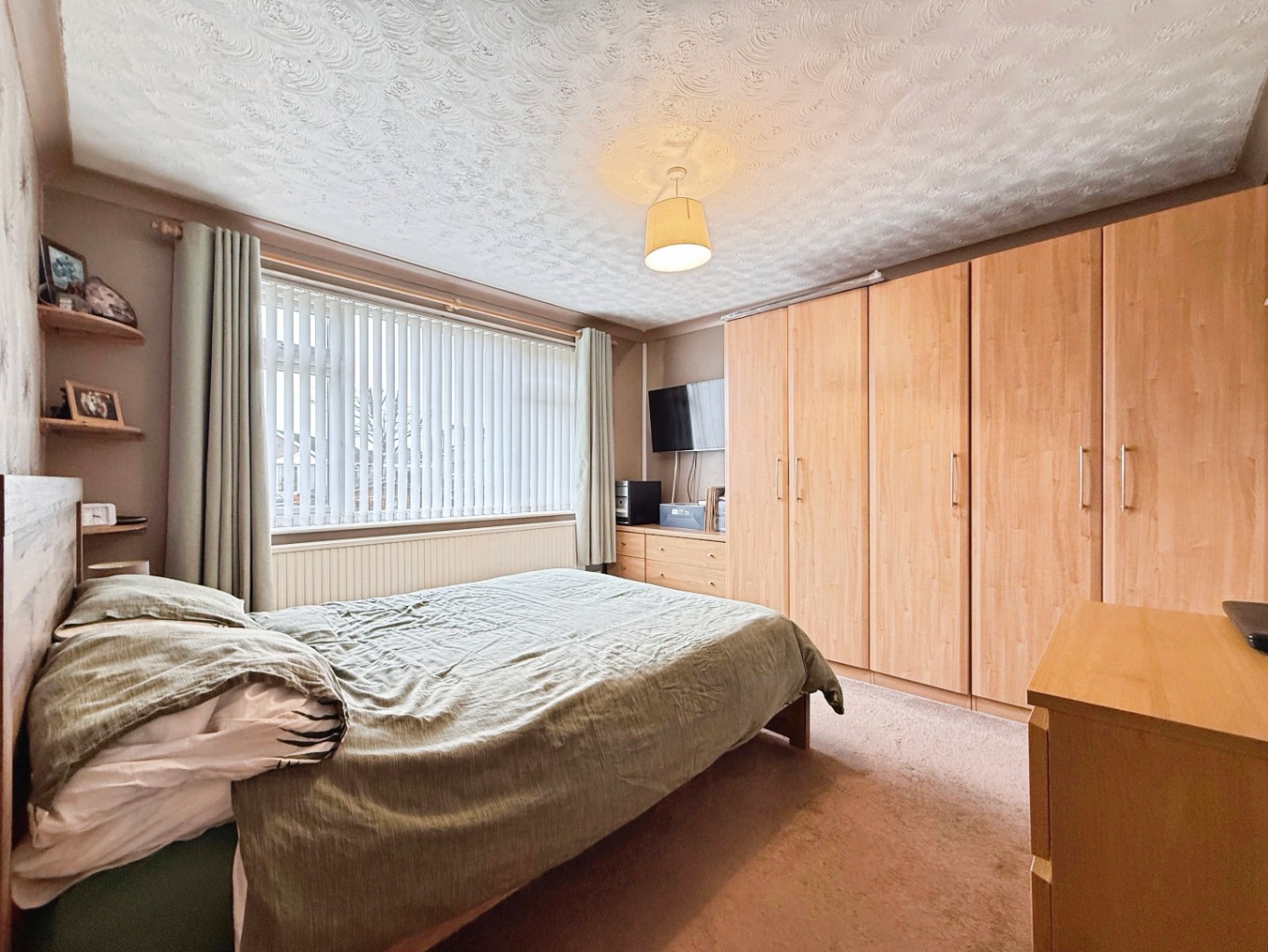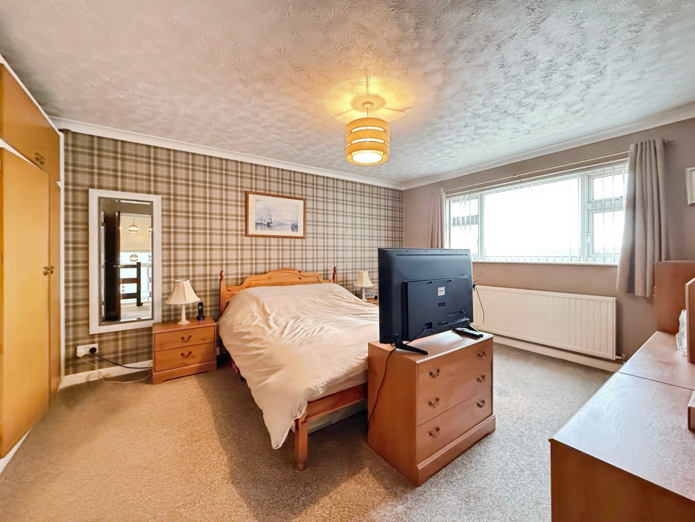 Carpeted underfoot, built in wardrobes, radiator, uPVC double glazed window to front elevation with views.