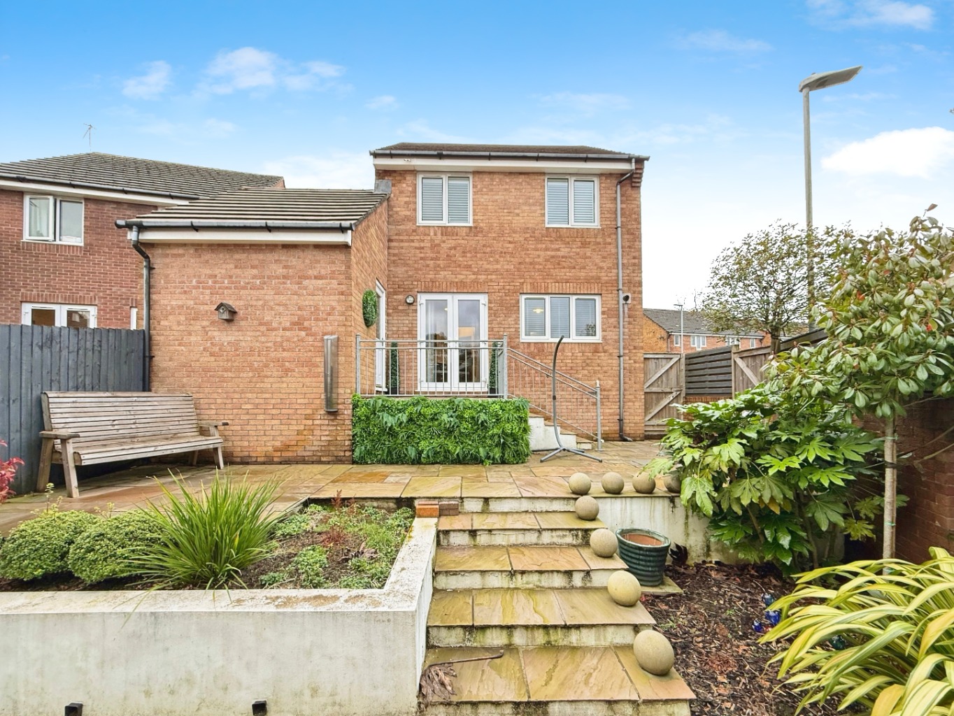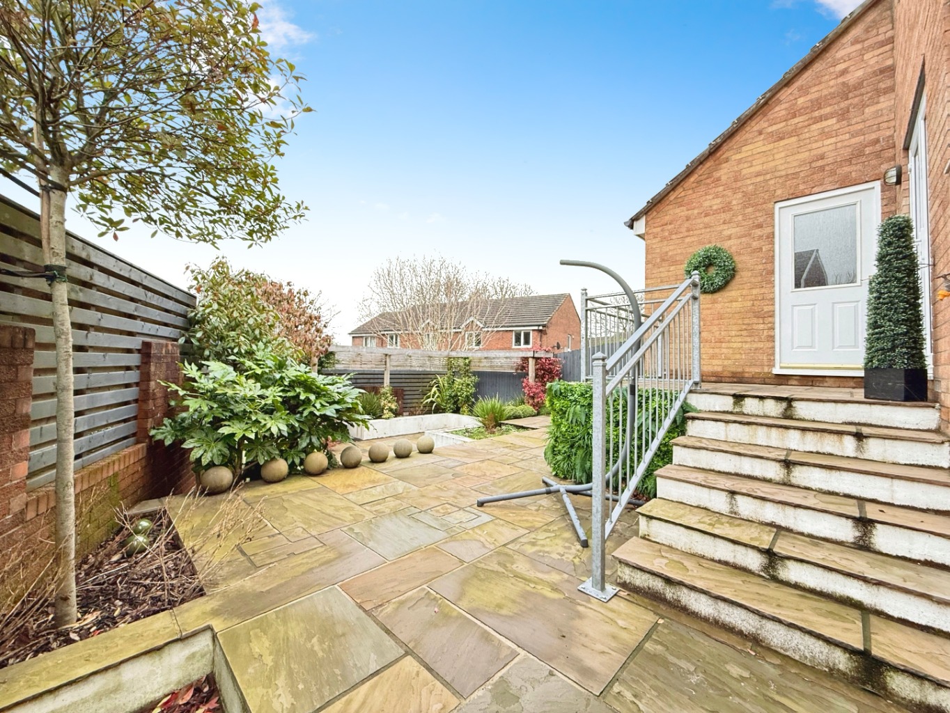 To the rear of the property there is a beautiful landscaped tiered garden, majority being sandstone patio with bed boarders and fully walled boundary. Gated side access, side door into garage.