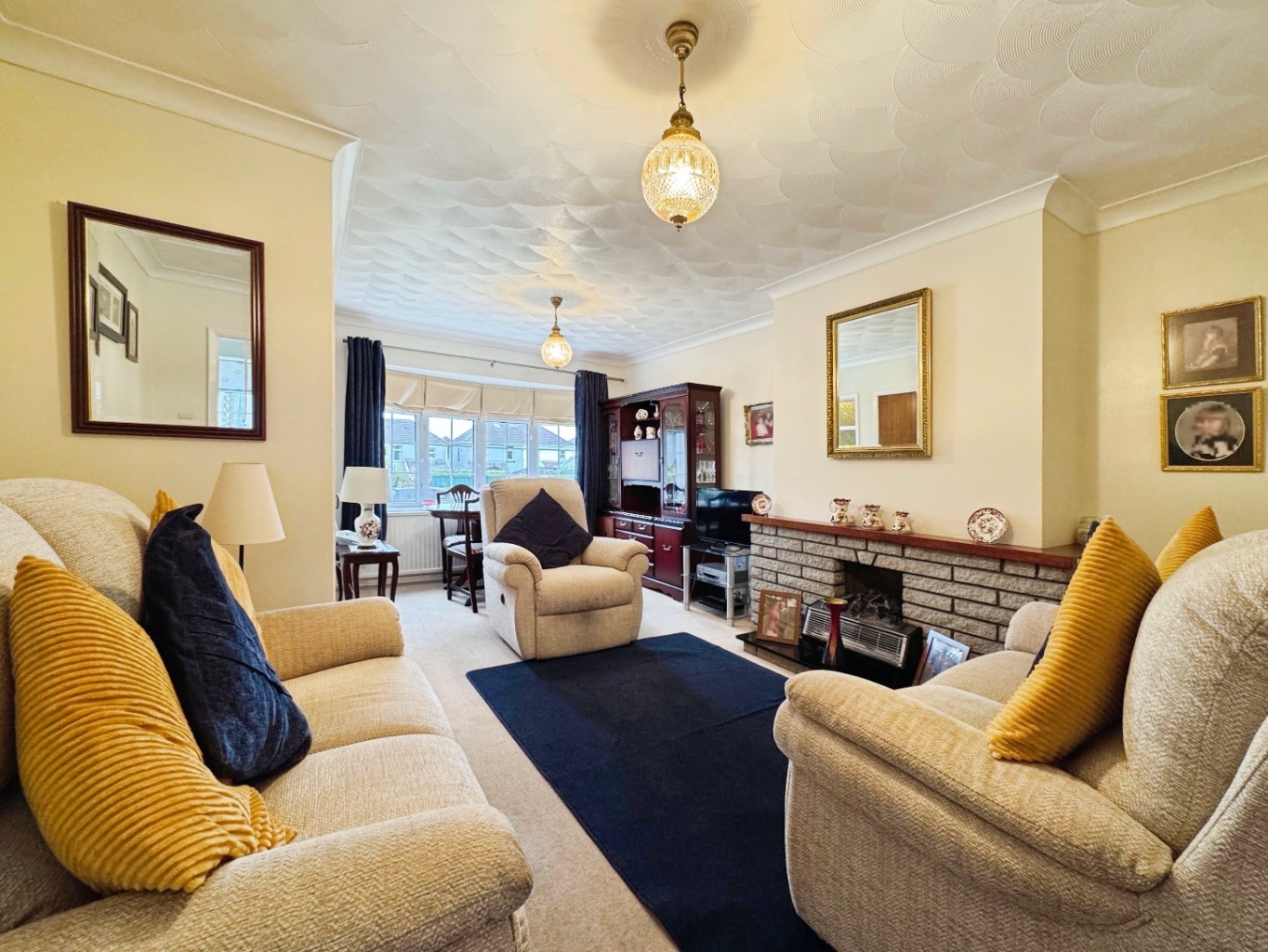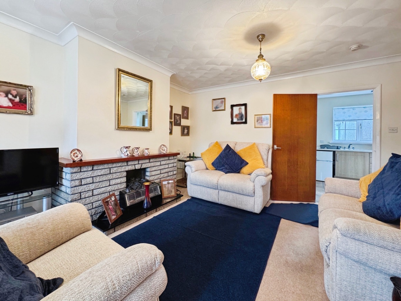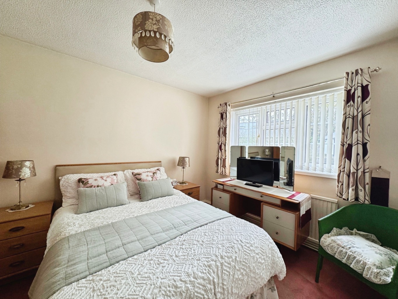 Coving to ceiling, uPVC double glazed bay window, radiator x2, electric fire with brick surround.