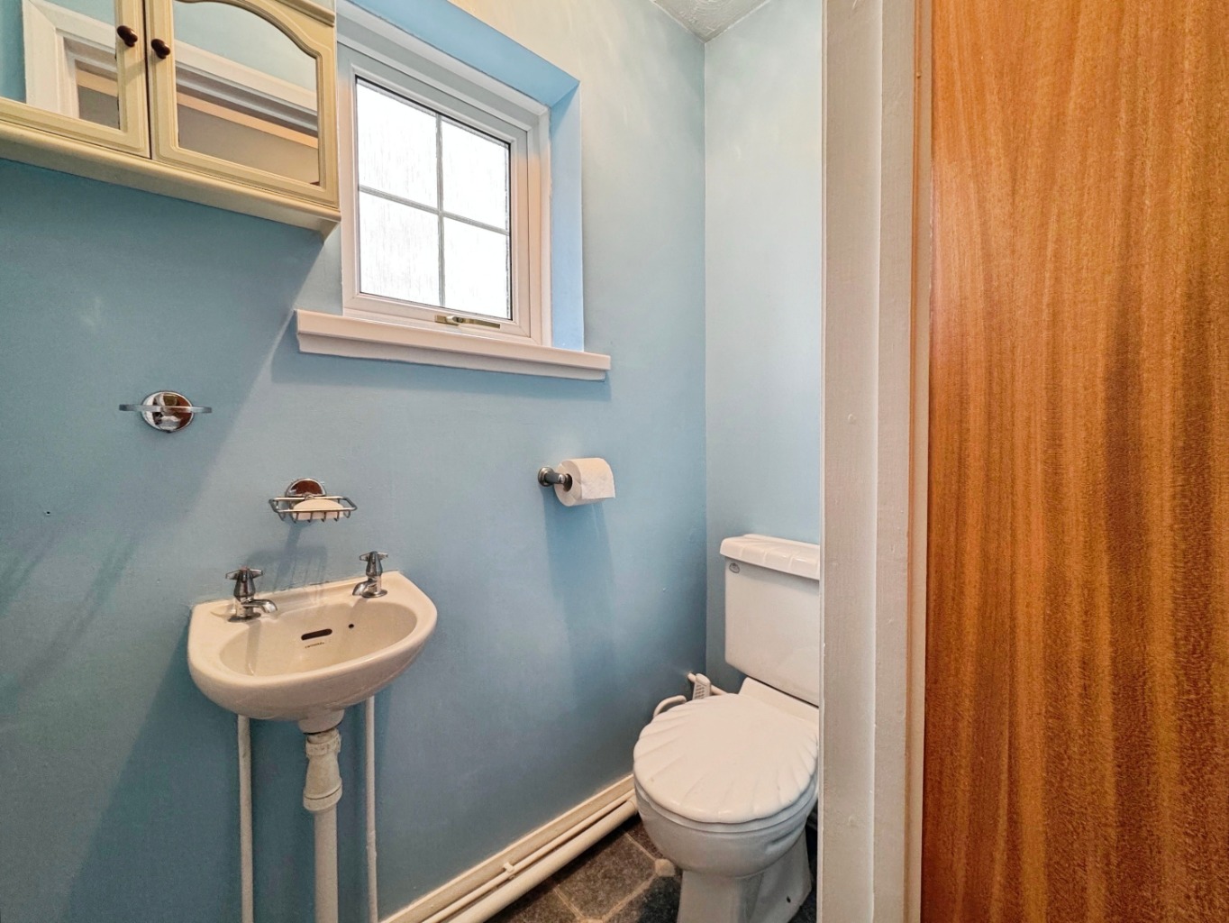 Fitted with a two piece suite comprising of w.c and wash hand basin, vinyl flooring, obscure uPVC double glazed window.