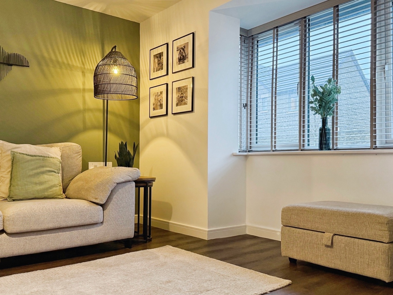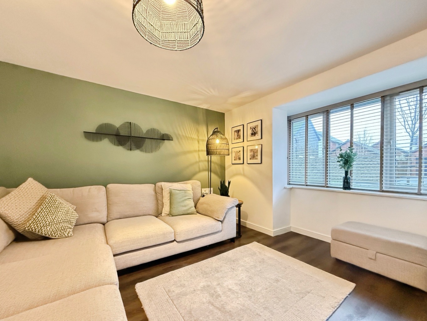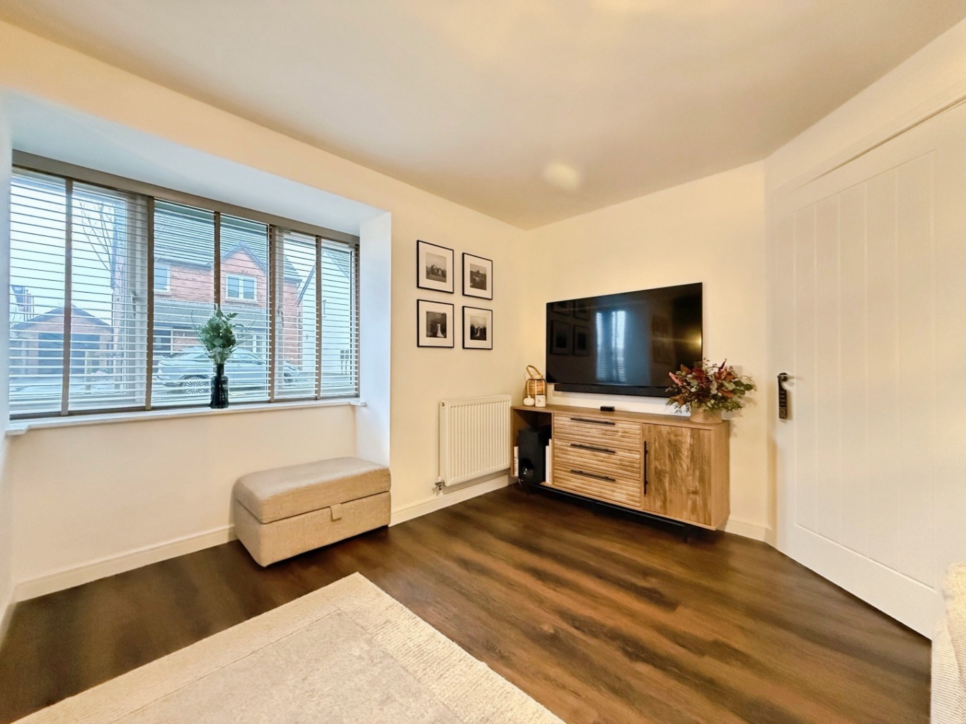 Laminate flooring, radiator, uPVC double glazed bay style window to the front elevation.