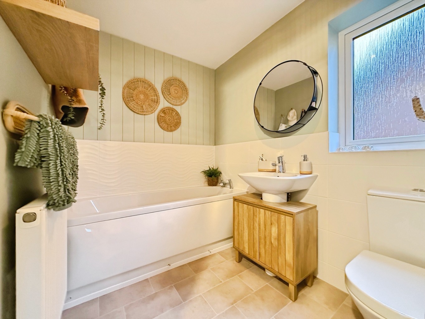 Fitted with a modern three piece suite comprising of W/C, pedestal wash hand basin, paneled bath, half height tiling, uPVC double glazed frosted window to side elevation, radiator.