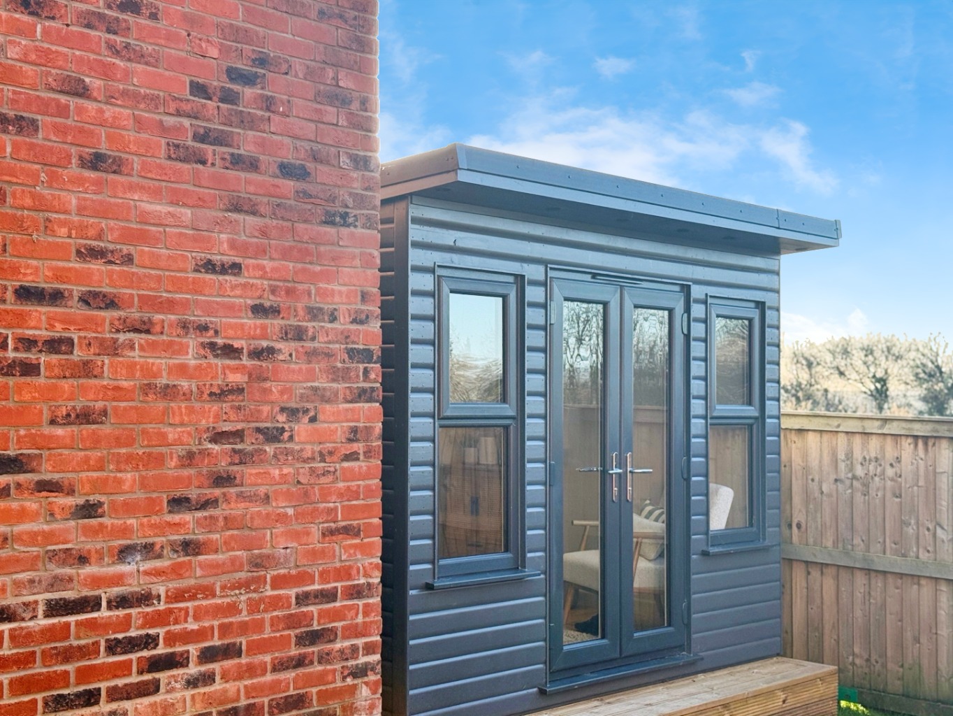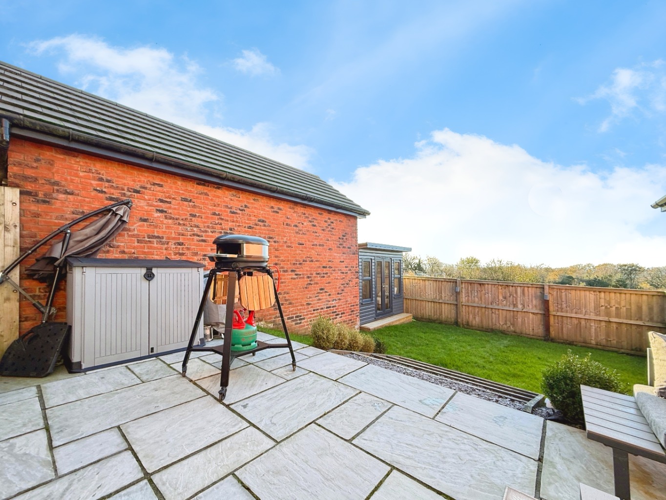 The vendors have added a garden room to the bottom of the garden which features power and lighting creating a great space for either working from home or a chill out zone!