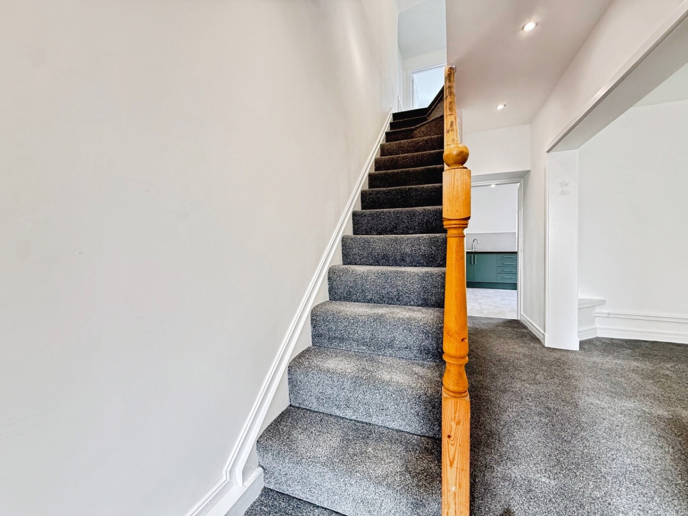 Carpeted underfoot, stairs to first floor accommodation, opening into: