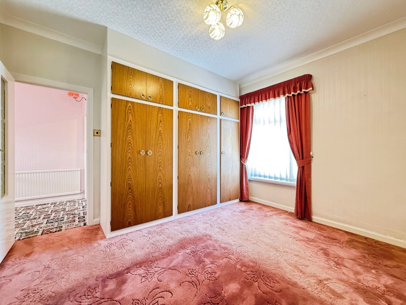 Carpeted underfoot, radiator, built in wardrobes, radiator, uPVC double glazed window to rear elevation.