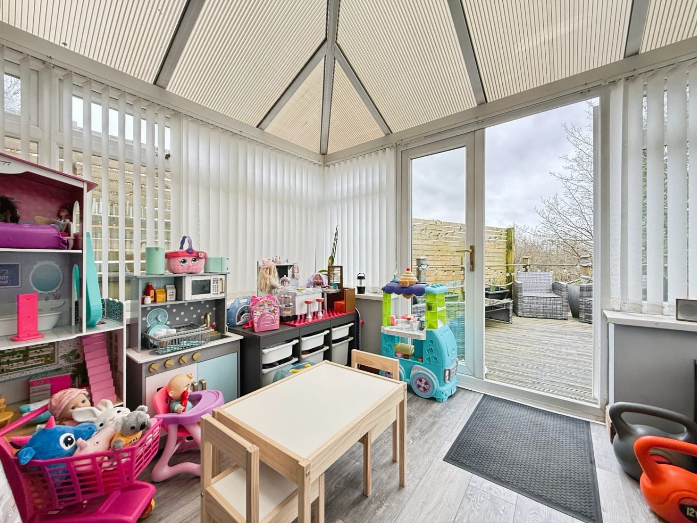 The accommodation is thoughtfully laid out and can be easily adapted to suit individual needs, with the option for additional reception rooms or bedrooms. At the heart of the home is a modern high-gloss kitchen, complemented by a large, light-filled lounge on the lower ground floor and a welcoming conservatory, perfect for relaxing or entertaining. A contemporary family bathroom and convenient downstairs W/C further enhance the home’s practicality.