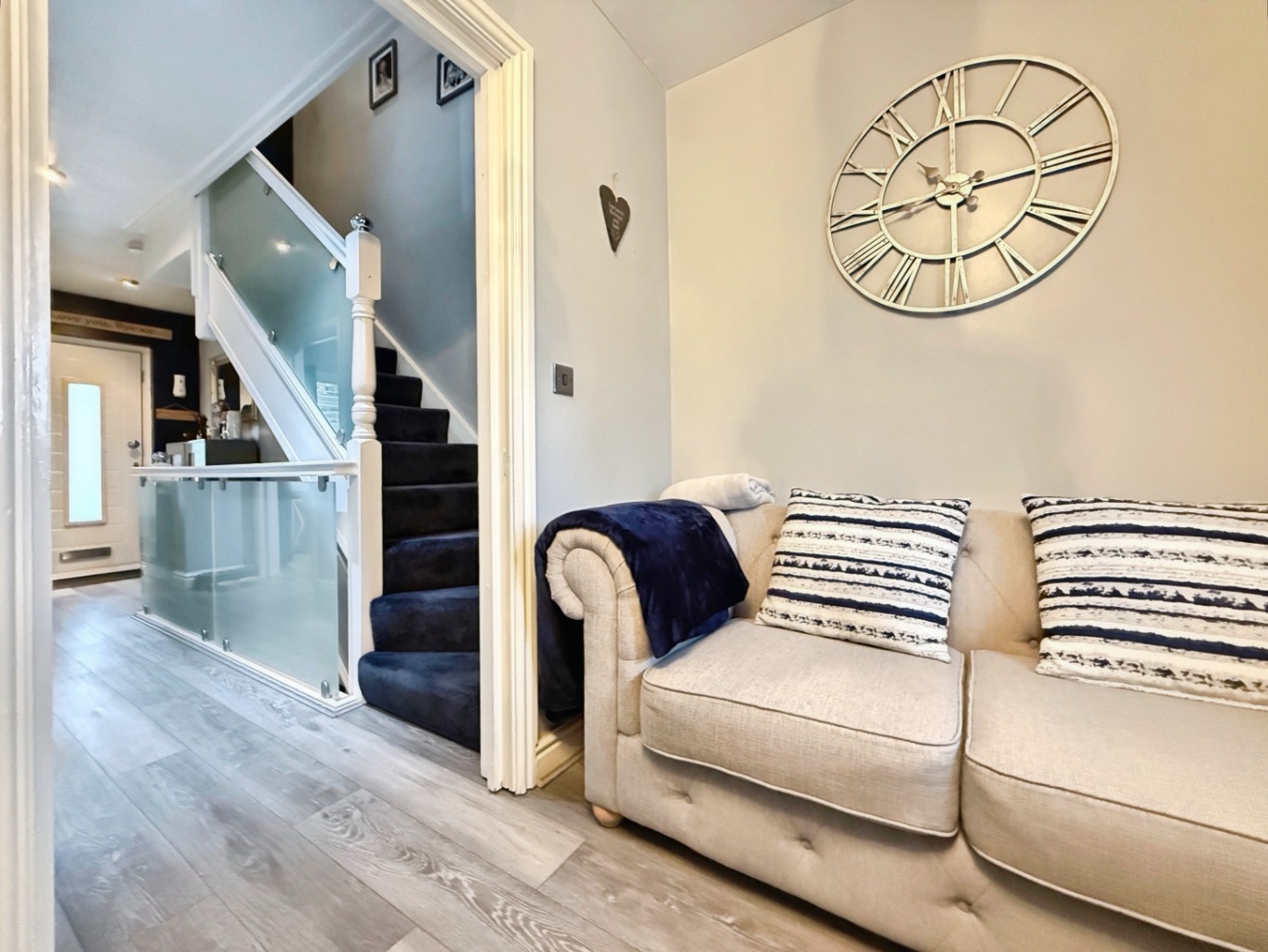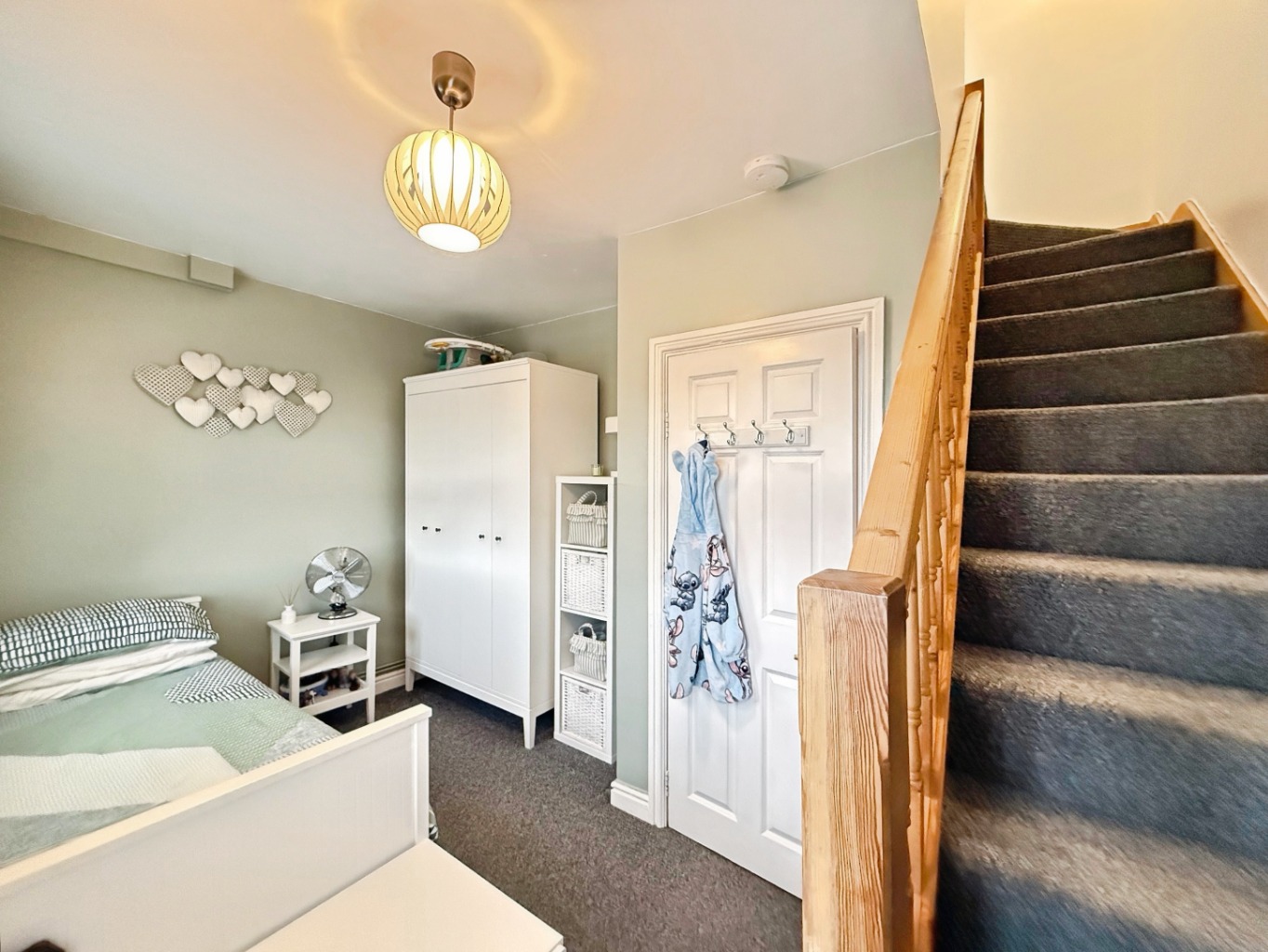 Carpeted underfoot, radiator, uPVC double glazed windows x2 to rear elevation with shutter blinds, radiator, carpeted stairs to second floor accomodation.