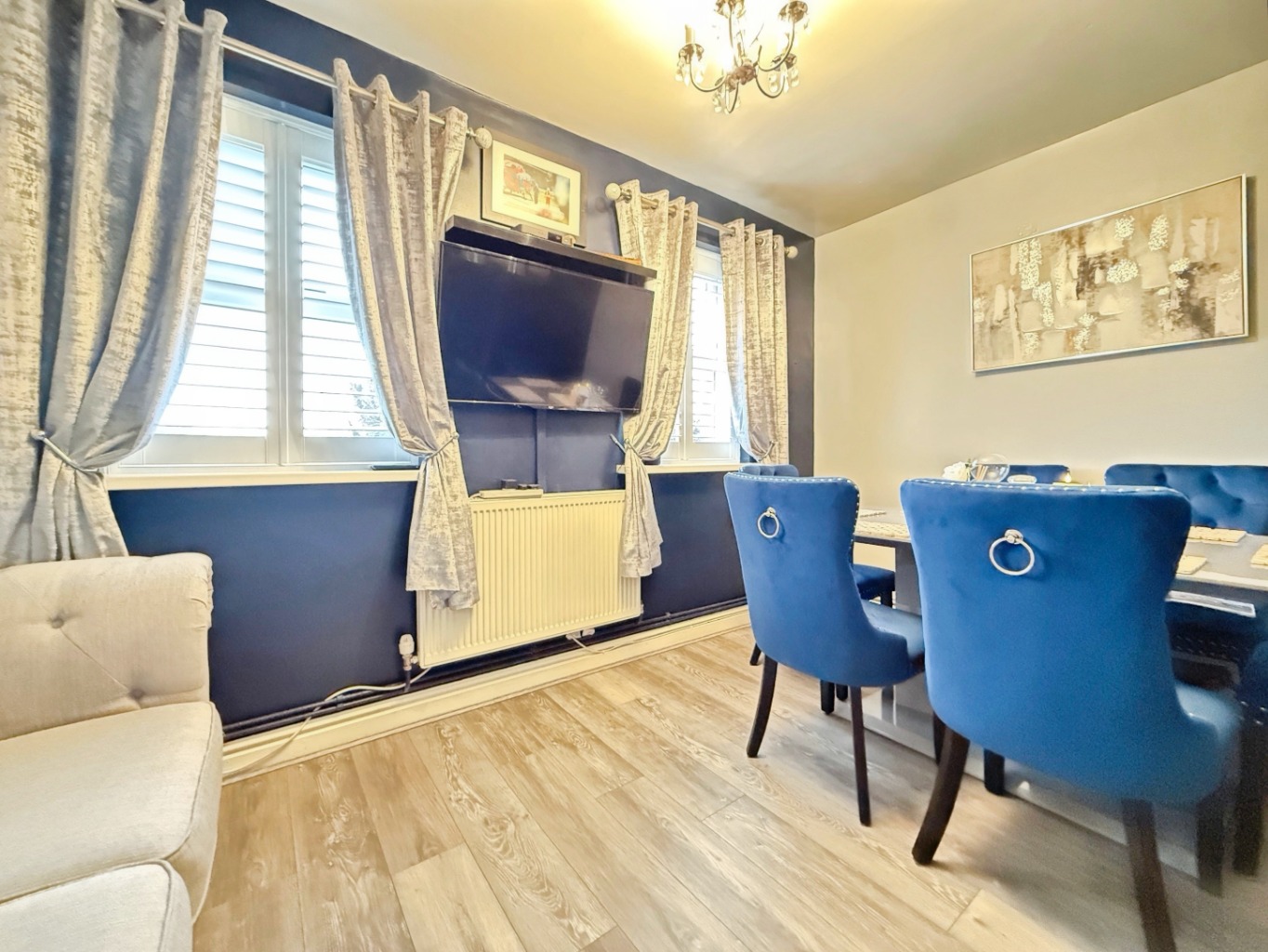LVT flooring underfoot, used currently as dining room, radiator, uPVC double glazed window x2 to rear elevation with shutter blinds, radiator.