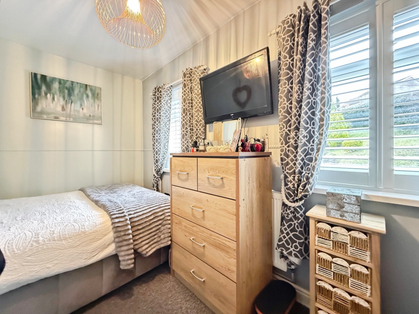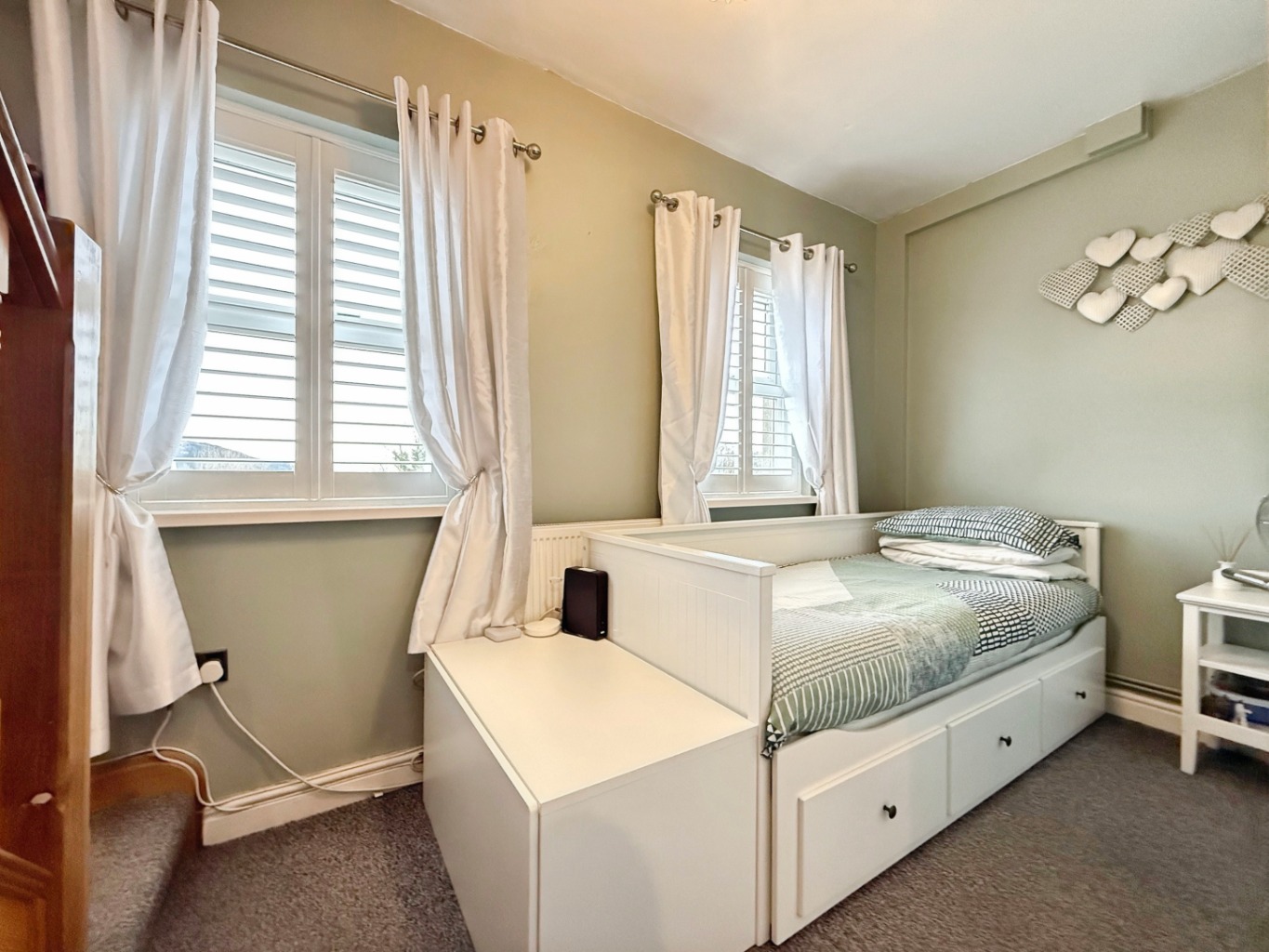 Carpeted underfoot, radiator, uPVC double glazed window x2 to front elevation, shutter blinds, radiator.