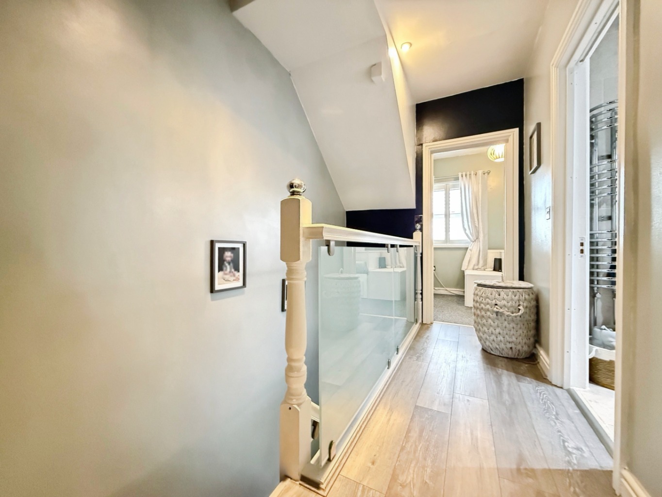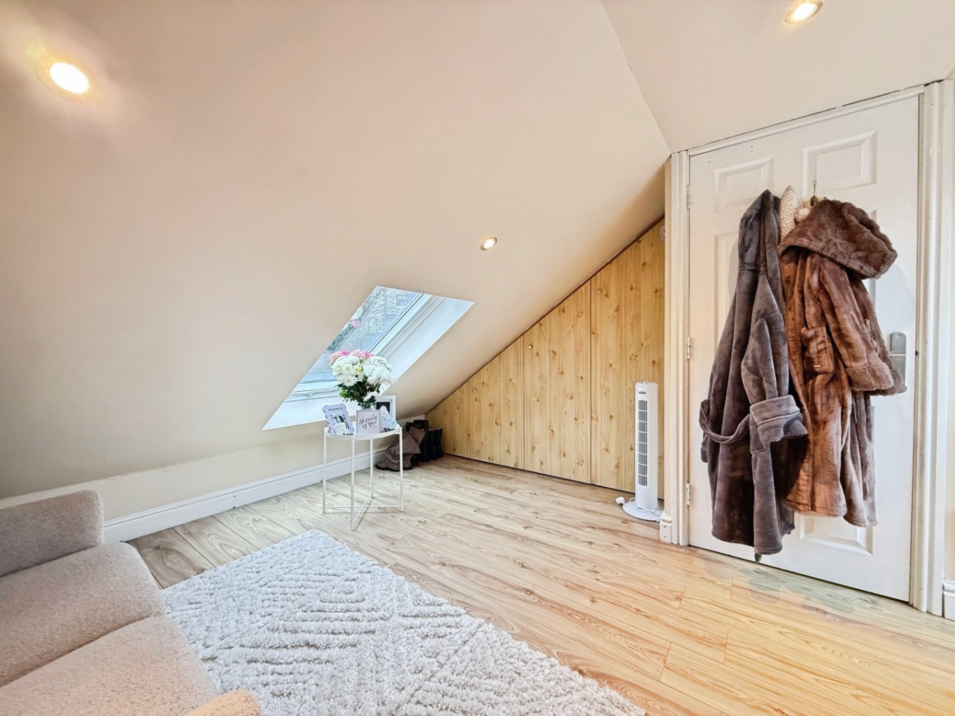 Laminate flooring, velux window to front and rear elevation, built in storage.