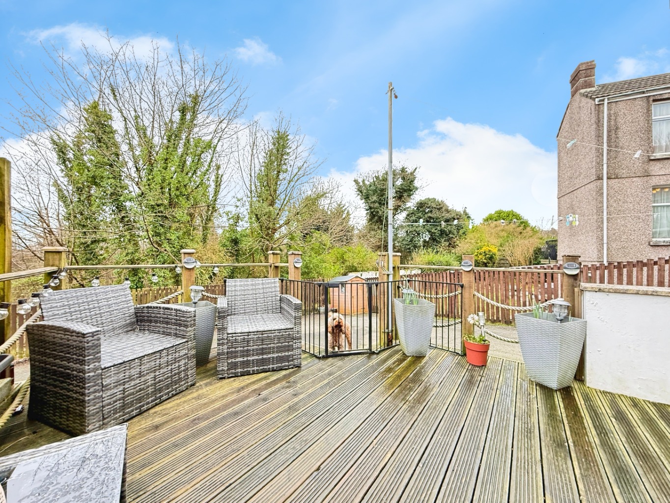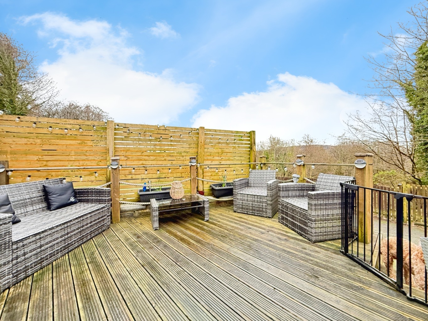 Externally, the property continues to impress with a low-maintenance, south-facing decked rear garden, ideal for outdoor dining and enjoying the sun. To the rear, there is a gated parking area shared with neighbouring properties, providing added security and convenience.