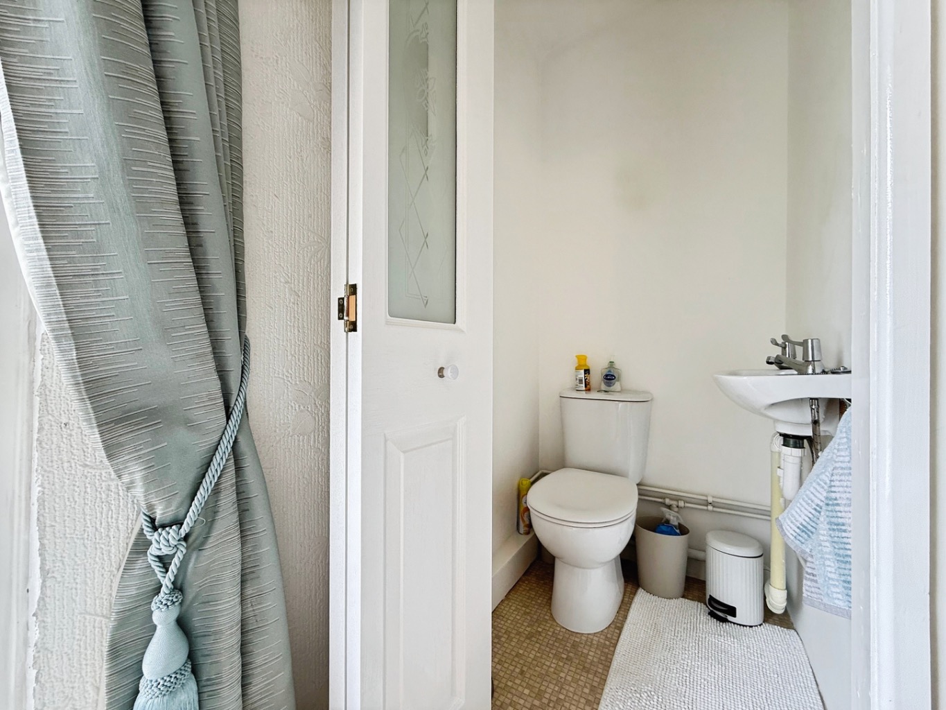 Fitted with a white two piece suite of W/C and wash hand basin.