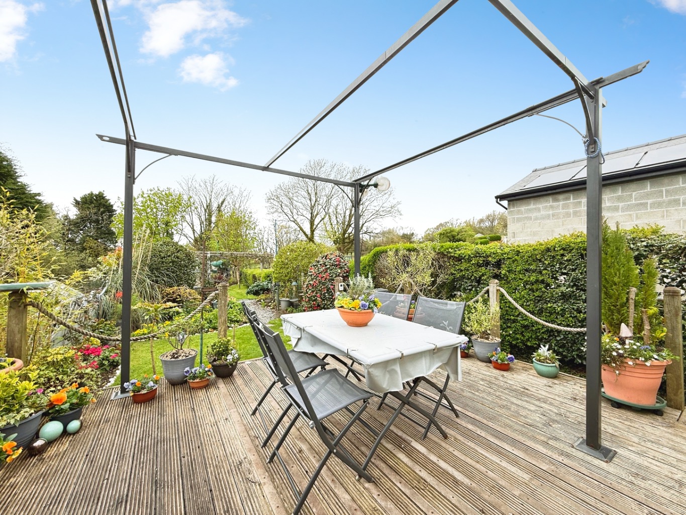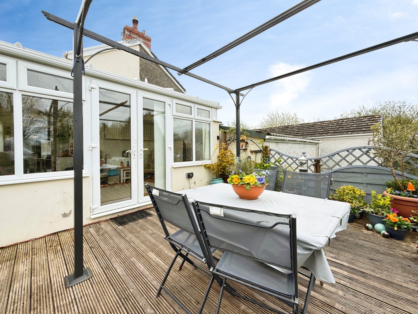 Externally, the home truly shines. The generous west-facing garden enjoys sunshine throughout the afternoon and evening, featuring a decked seating area, a charming pergola, and a well-maintained lawn. The garden offers a high degree of privacy, as it is not overlooked—creating a peaceful and secluded outdoor retreat.