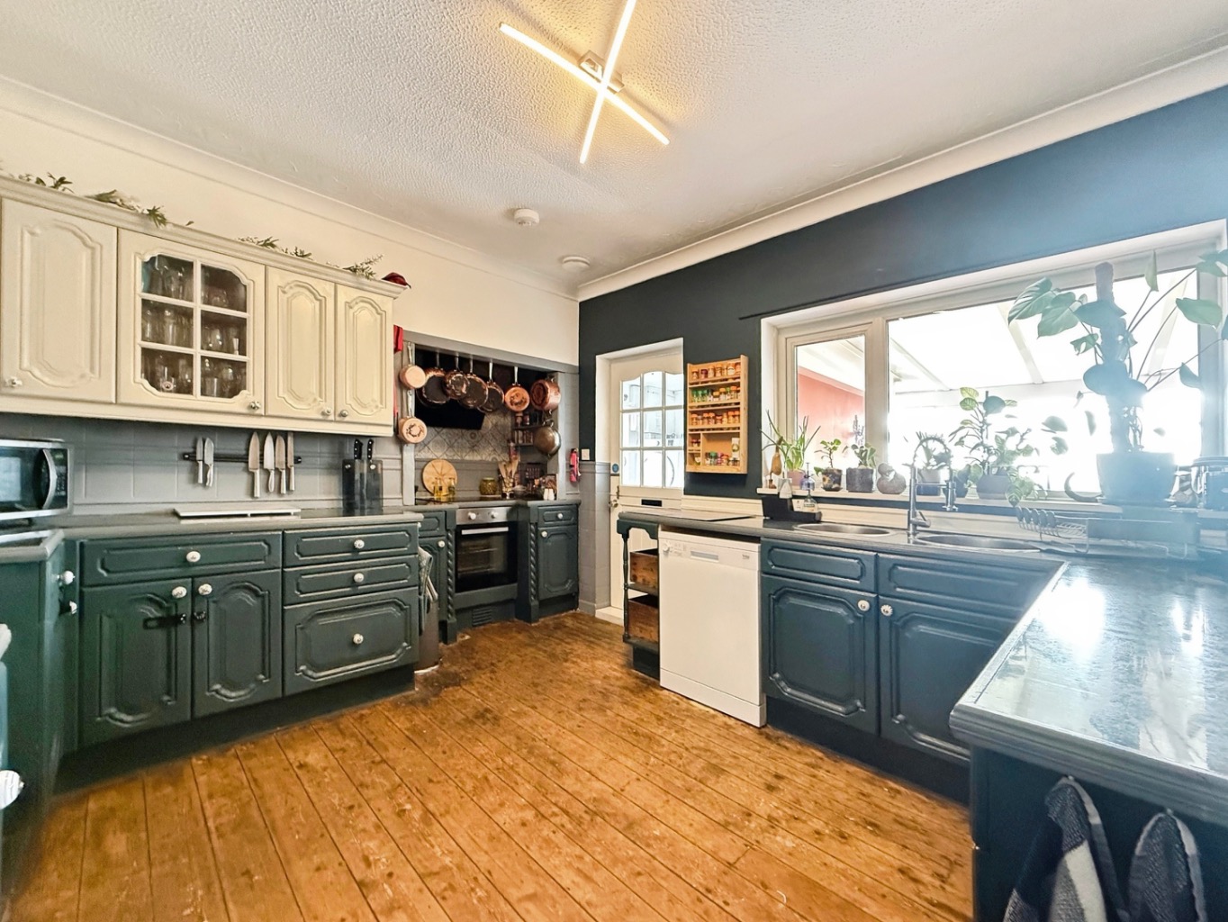 Set behind a generous frontage, the property boasts an expansive multi-vehicle driveway and a beautifully maintained front garden, immediately setting the tone for what lies beyond. From the moment you step inside, the home reveals a carefully curated interior, rich in character and designed with relaxation in mind.