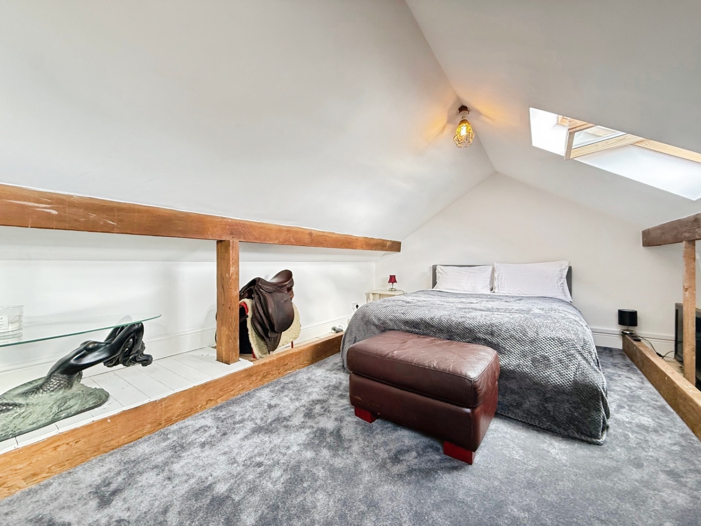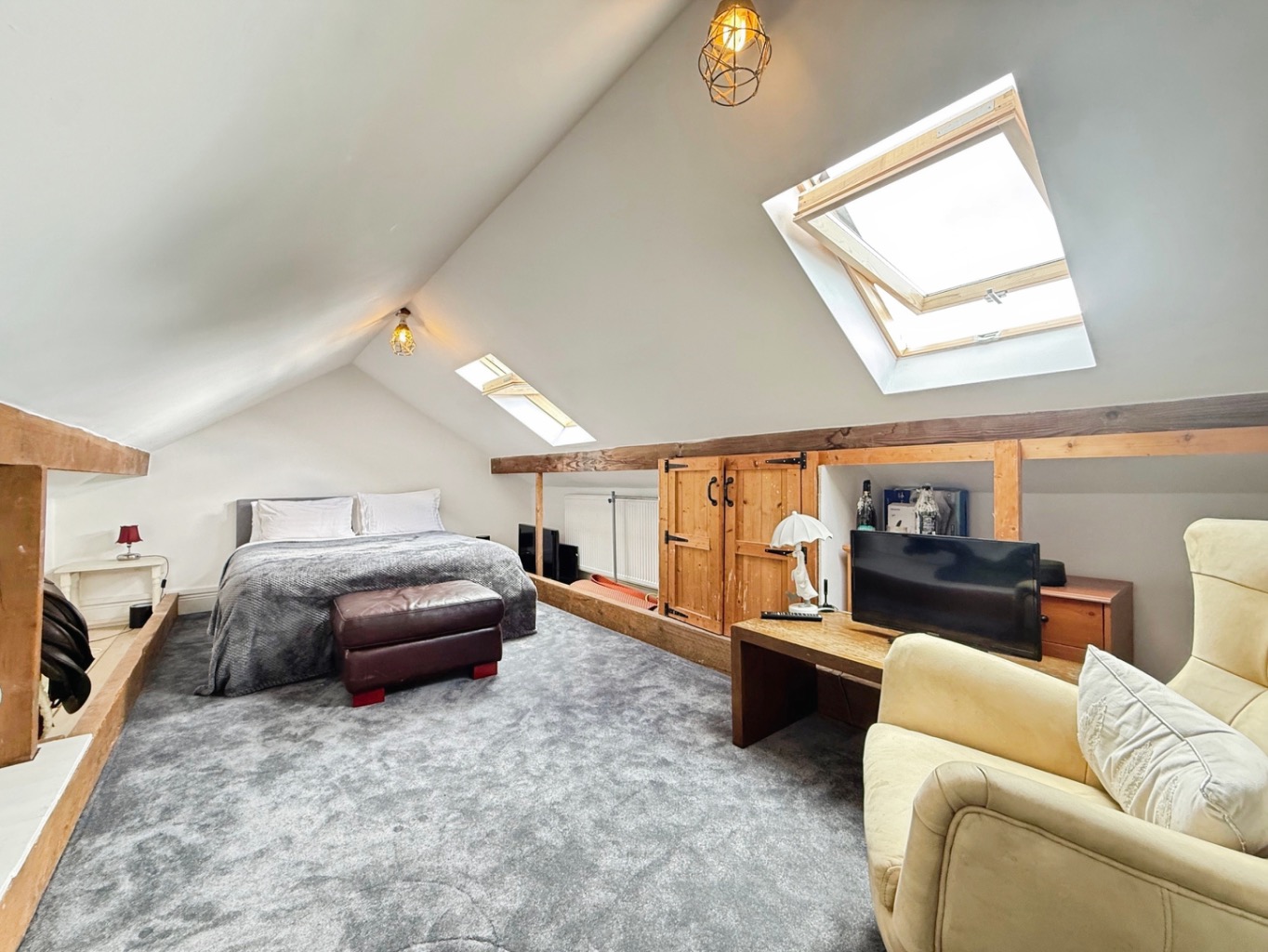 Carpeted underfoot, velux windows x2 to rear elevation, eaves storage.