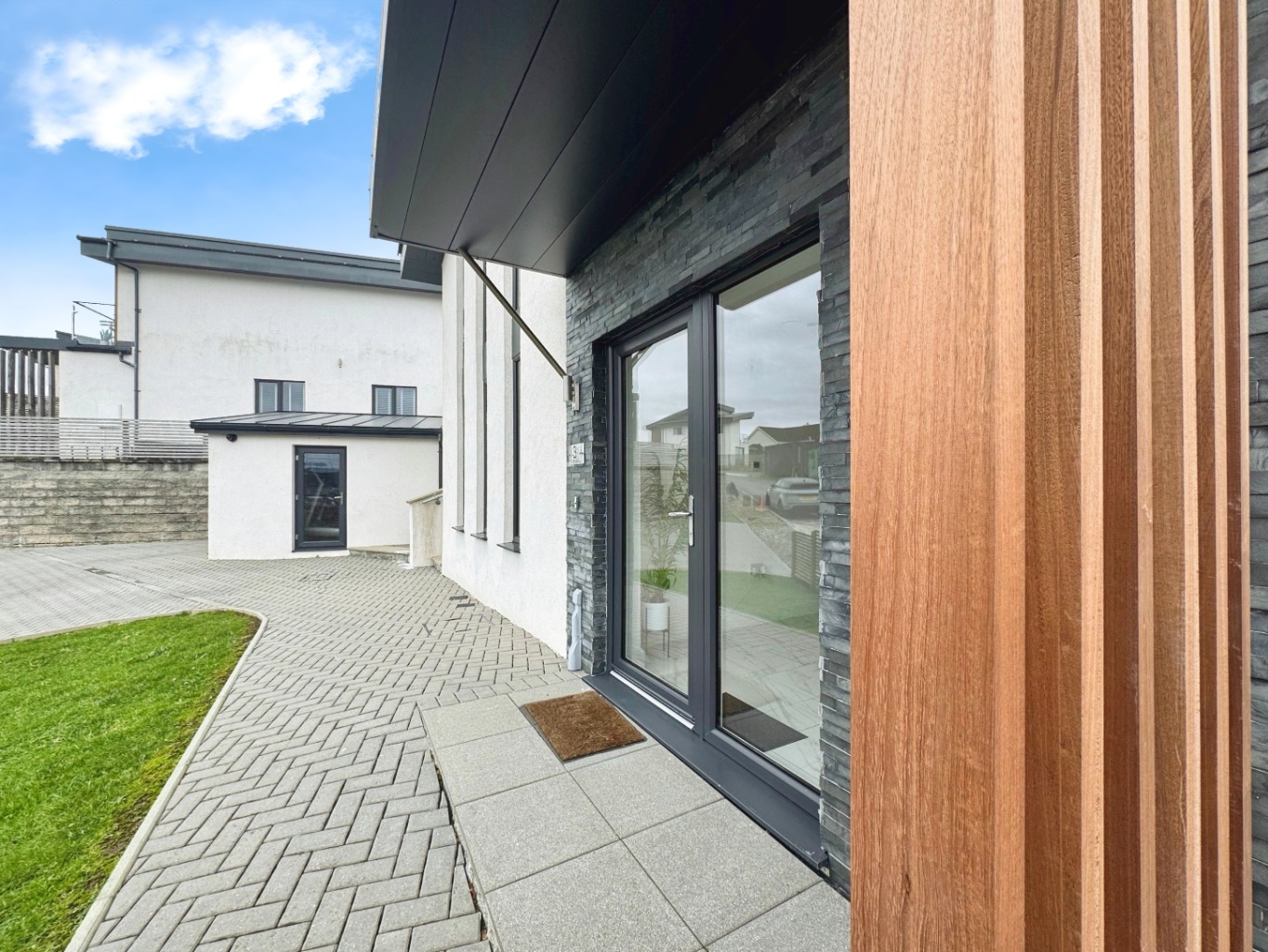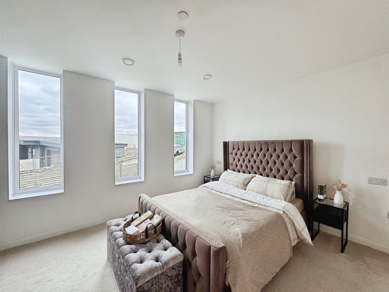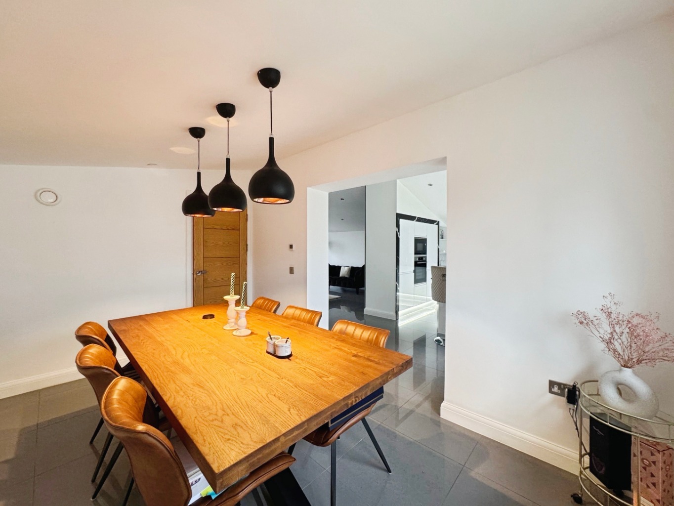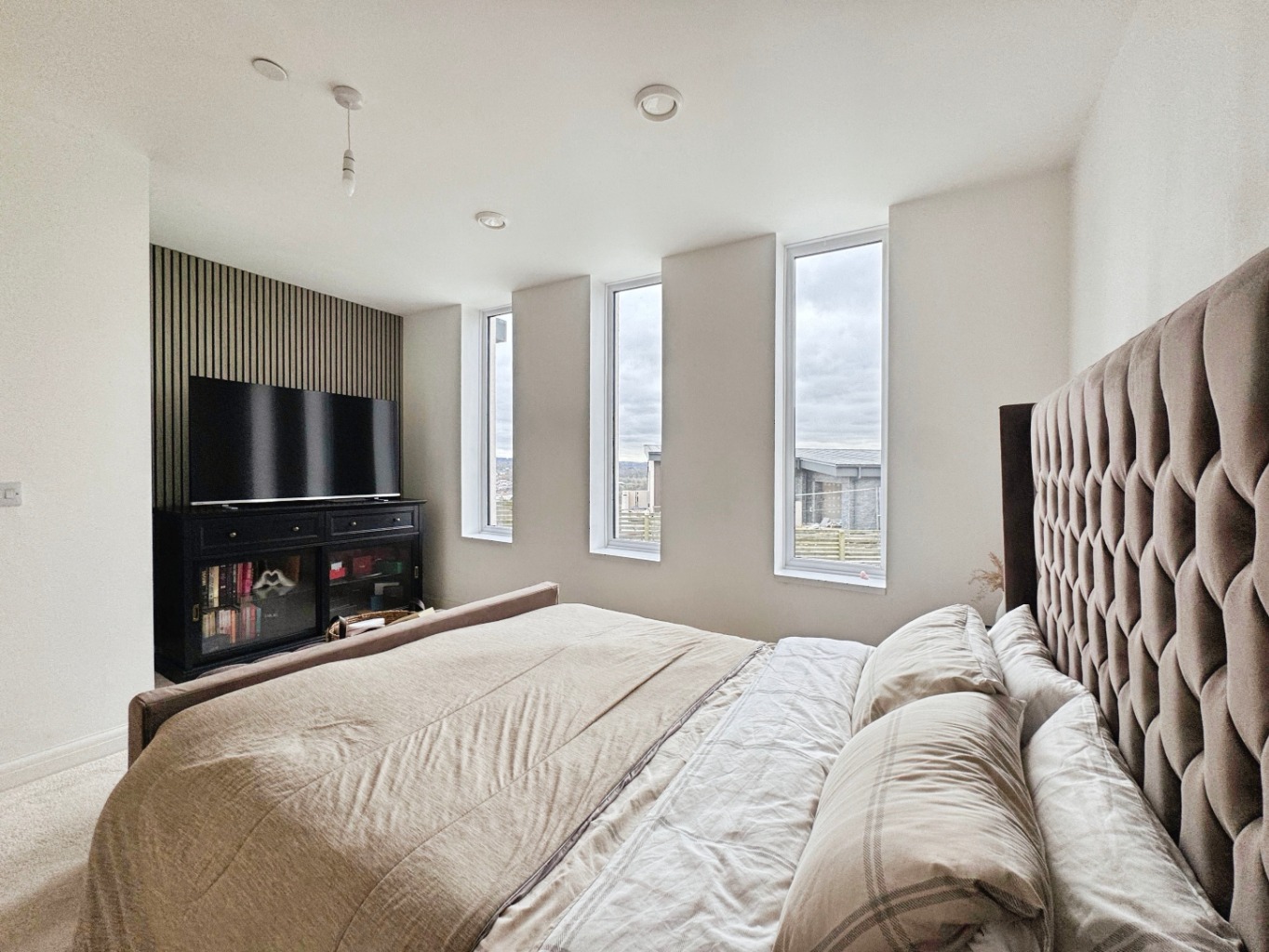 From the moment you step inside, a welcoming entrance hallway sets a tone of contemporary elegance. The feature oak staircase, complete with a sleek glass balustrade, immediately draws your eye, hinting at the quality and style that awaits throughout. This ground floor is dedicated to peaceful slumber, housing four well appointed bedrooms. The master suite is a sanctuary of calm with three floor to ceiling windows and a sleek en-suite bathroom with clean lines and modern styling. A contemporary four-piece family bathroom suite serves the remaining bedrooms, ensuring convenience and privacy for all.