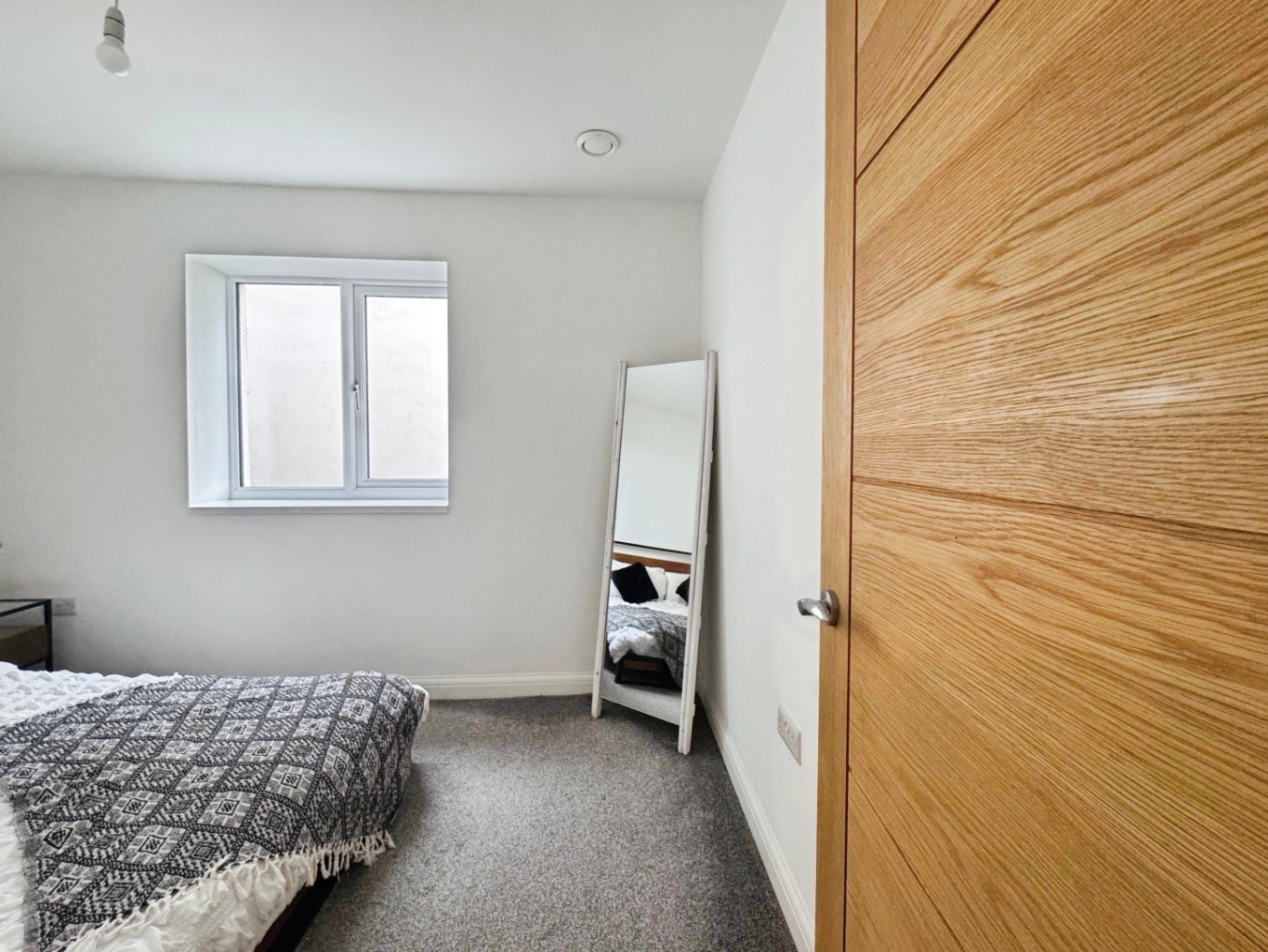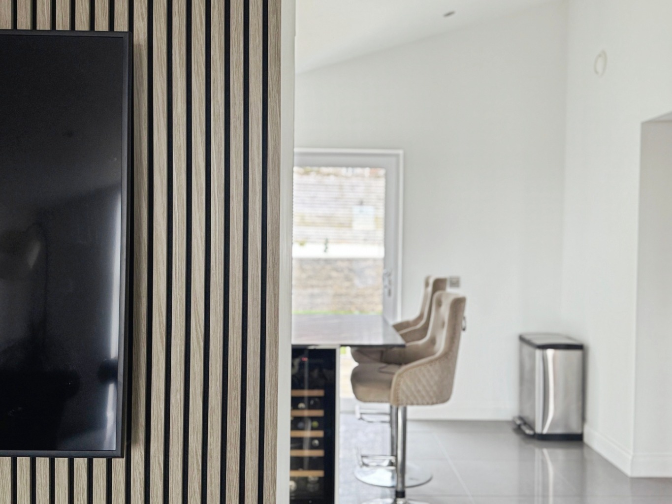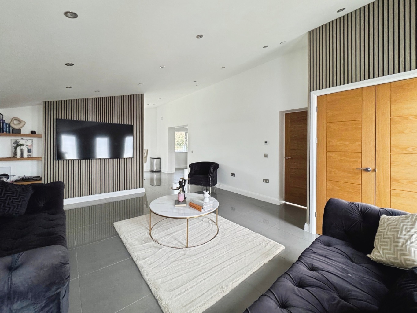 Spotlights to ceiling, uPVC double glazed windows x3, tiled floor, underfloor heating,panelled feature wall, double doors to storage cupboard housing water tank and boiler, opening through into;