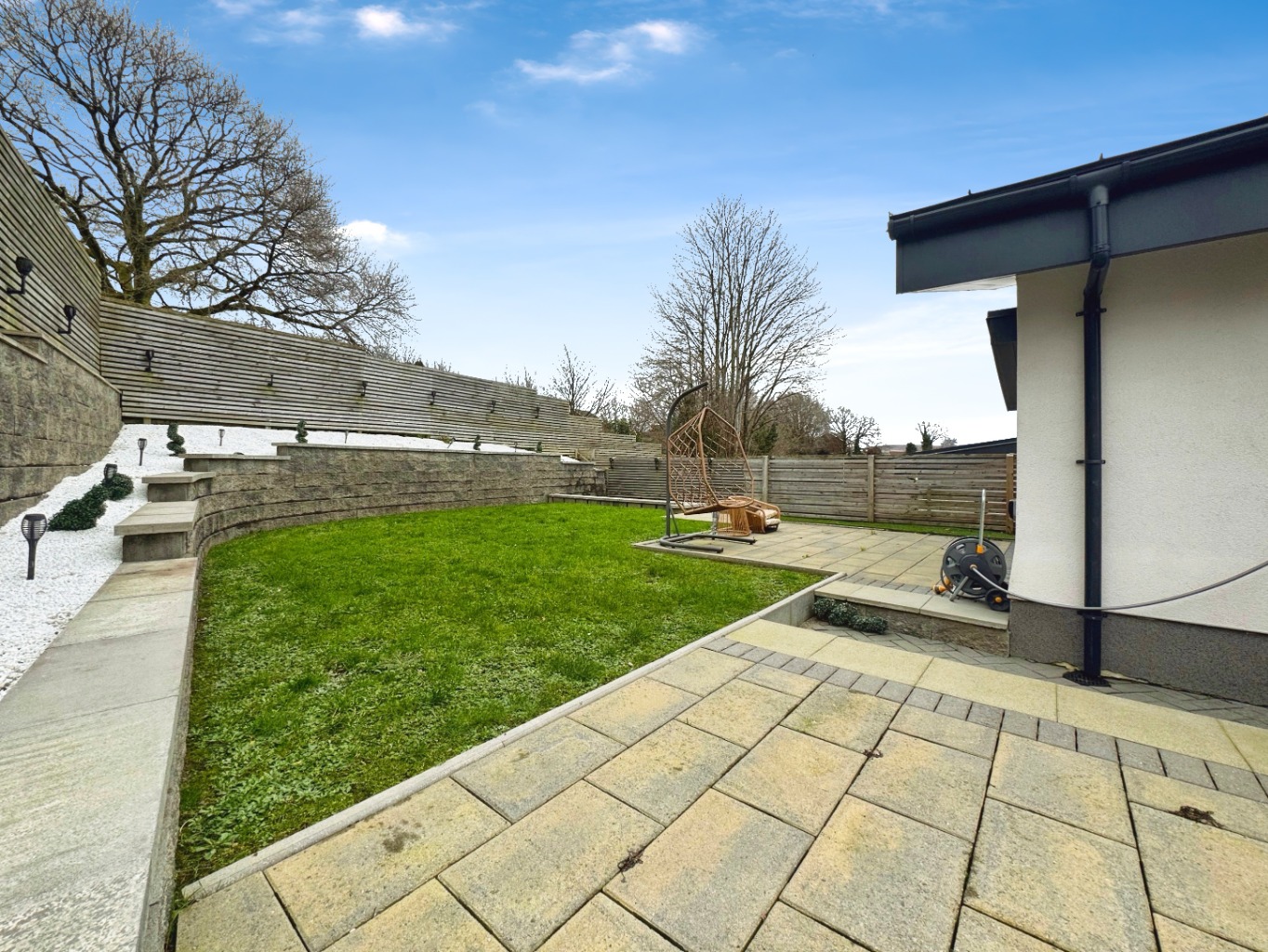 This beautiful home boasts a black paved driveway leading to the garage with a rear garden that has been landscaped to provide a paved patio and three separate lawn areas.